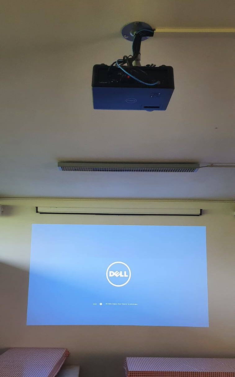 È dotata di un proiettore fisso a soffitto con sistema audio incorporato a cui possono essere collegati dispositivi esterni tramite collegamento HDMI.