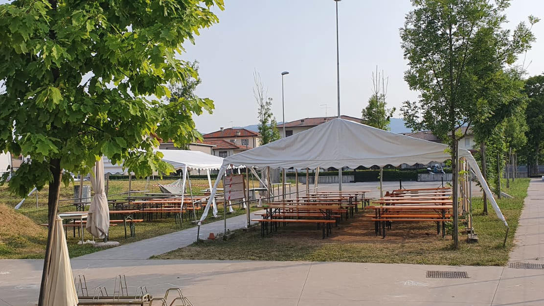 Per le attività estive abbiamo anche a disposizione due tendoni esterni dotati di panche, tavole ed illuminazione.