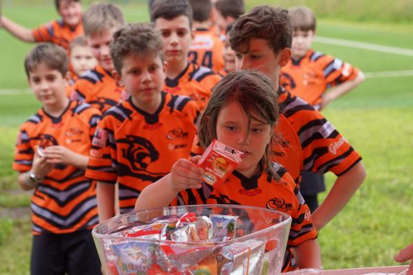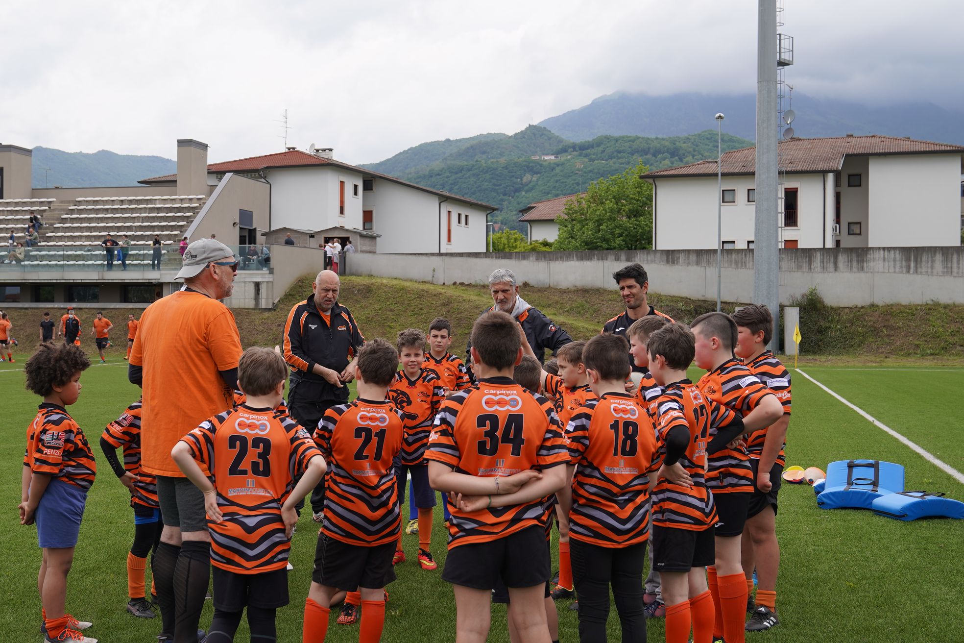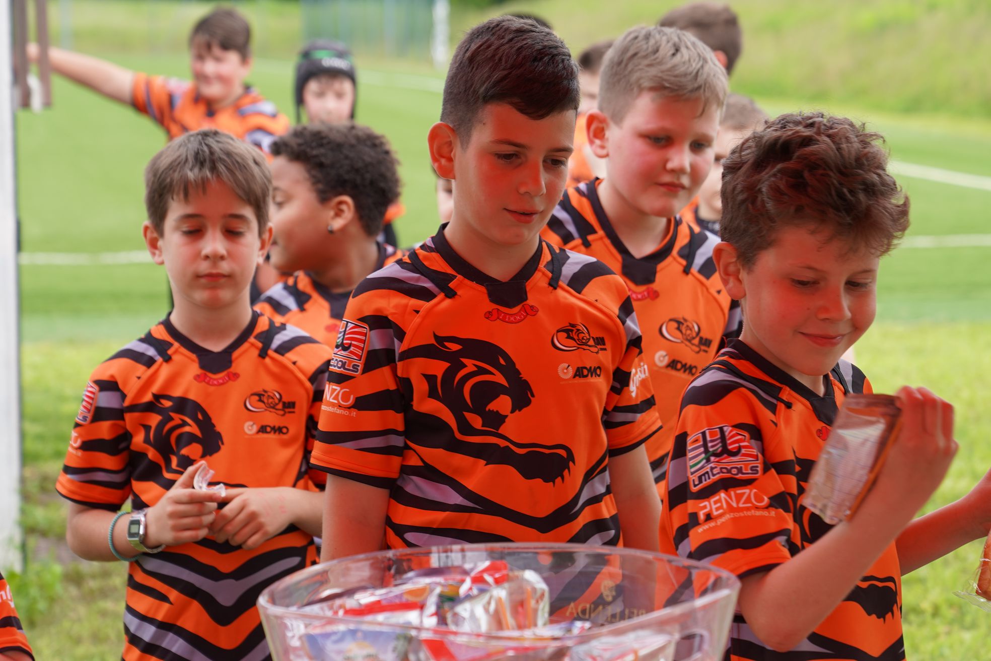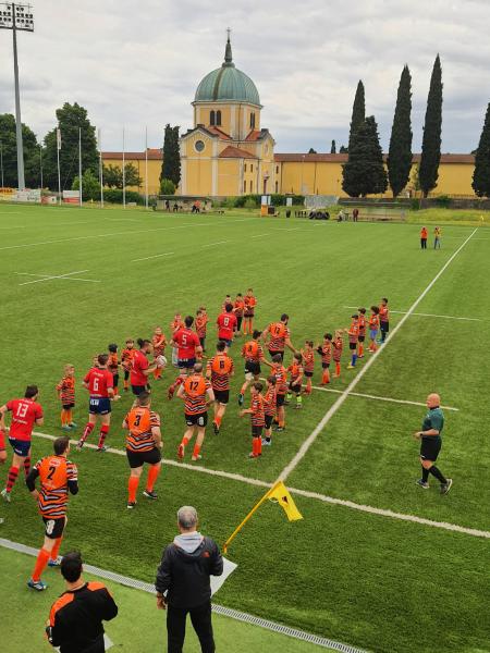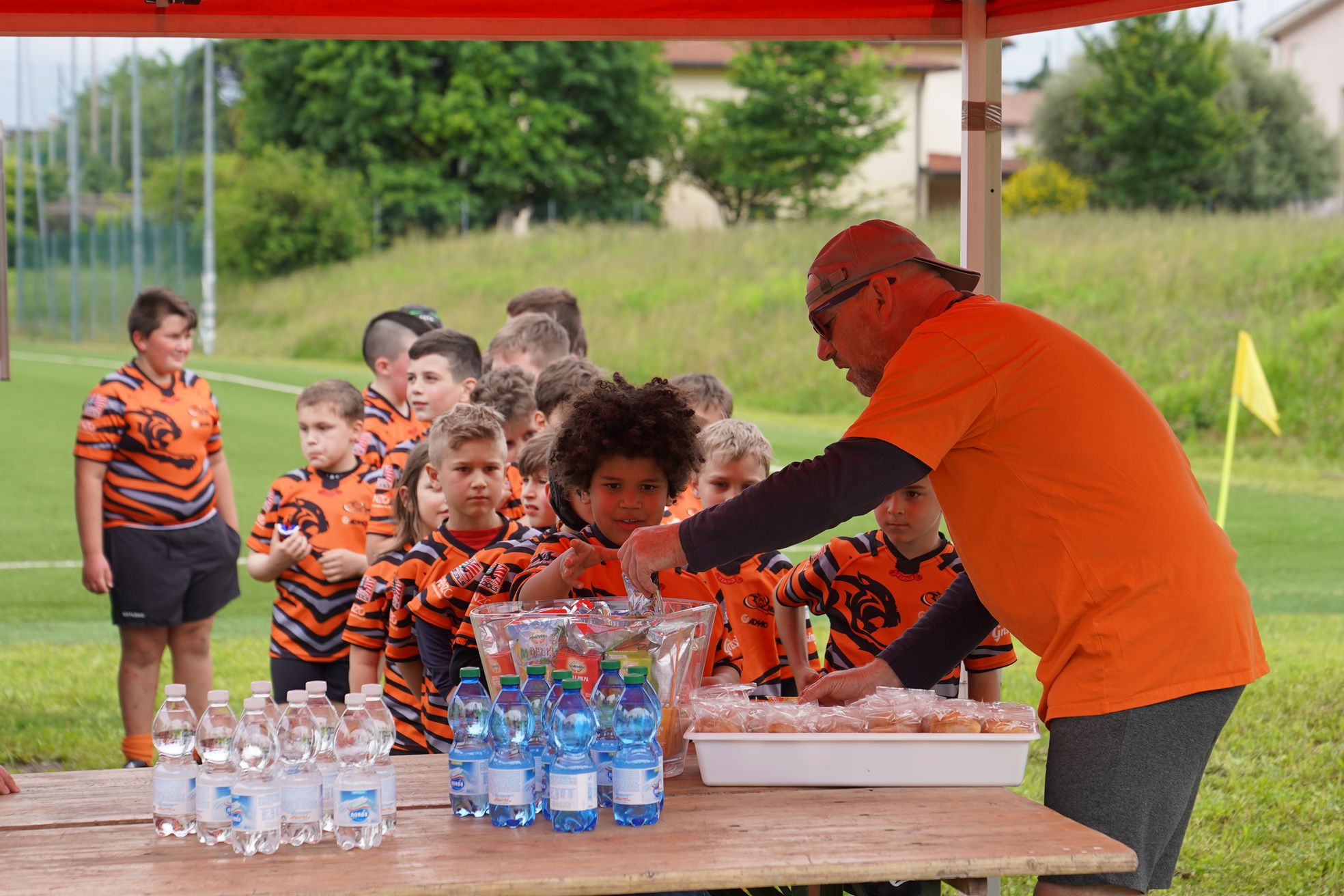 Dopo l'attività è seguita una merendina all'aperto e poi il saluto alla squadra Senior, vestita con le stesse identiche maglie : un bella giornata in Arancio e nero !