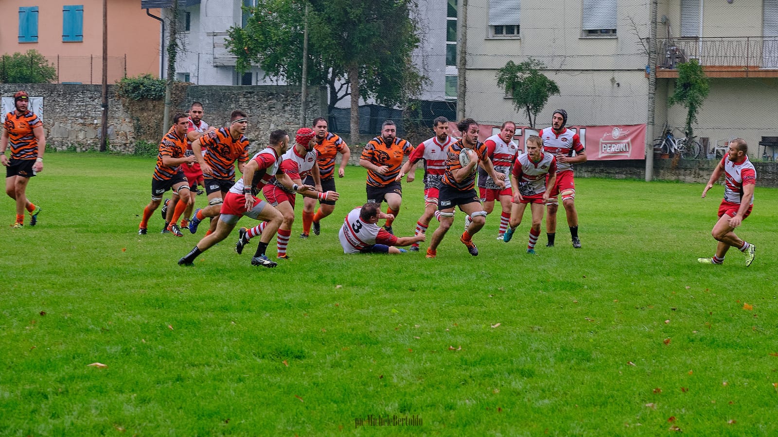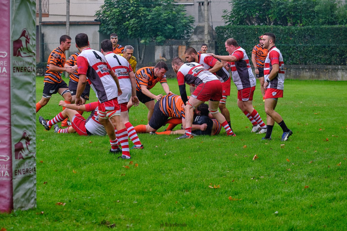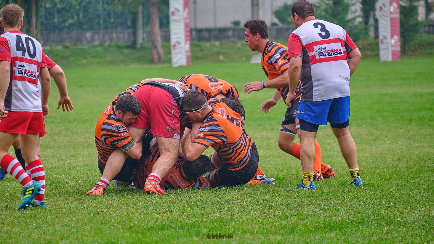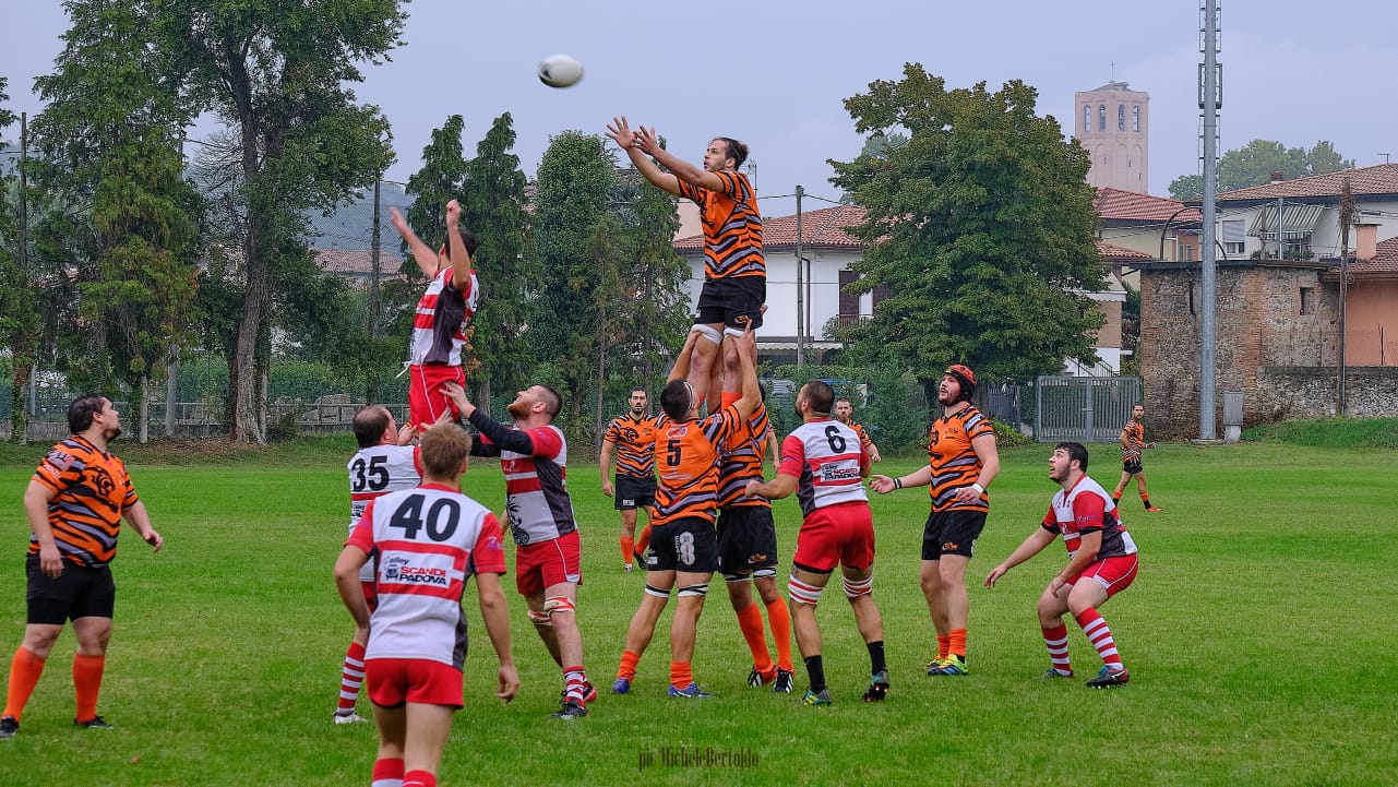 Questo ci costa una meta non trasformata ed il Monselice vola sul punteggio di 11-0, tuttavia il RAV, molto combattivo non demorde e dopo un giallo per fuorigioco d un giocatore del Monselice, finalmente l’arbitro ci assegna una giusta meta tecnica e si va sul 11-7.