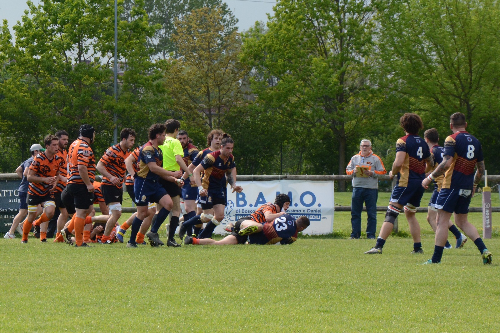 La mischia è in difficoltà ma sembra reggere, fino al cambio di Busetto per infortunio ed al cambio di Zebele subentrato al 10° del 2° tempo e che deve abbandonare il campo anche lui per infortunio dopo 2 minuti. Questo ci costringe alla mischia no contest che non ci da alcun vantaggio, anzi lo da ai nostri esperti avversari che riescono sempre a trarre il meglio da tutte le situazioni di gioco. Che siano ispirati si vede, per fortuna un riuscito drive da touche ci permette di segnare una meta e si va sul 23-10 al 30°minuto.