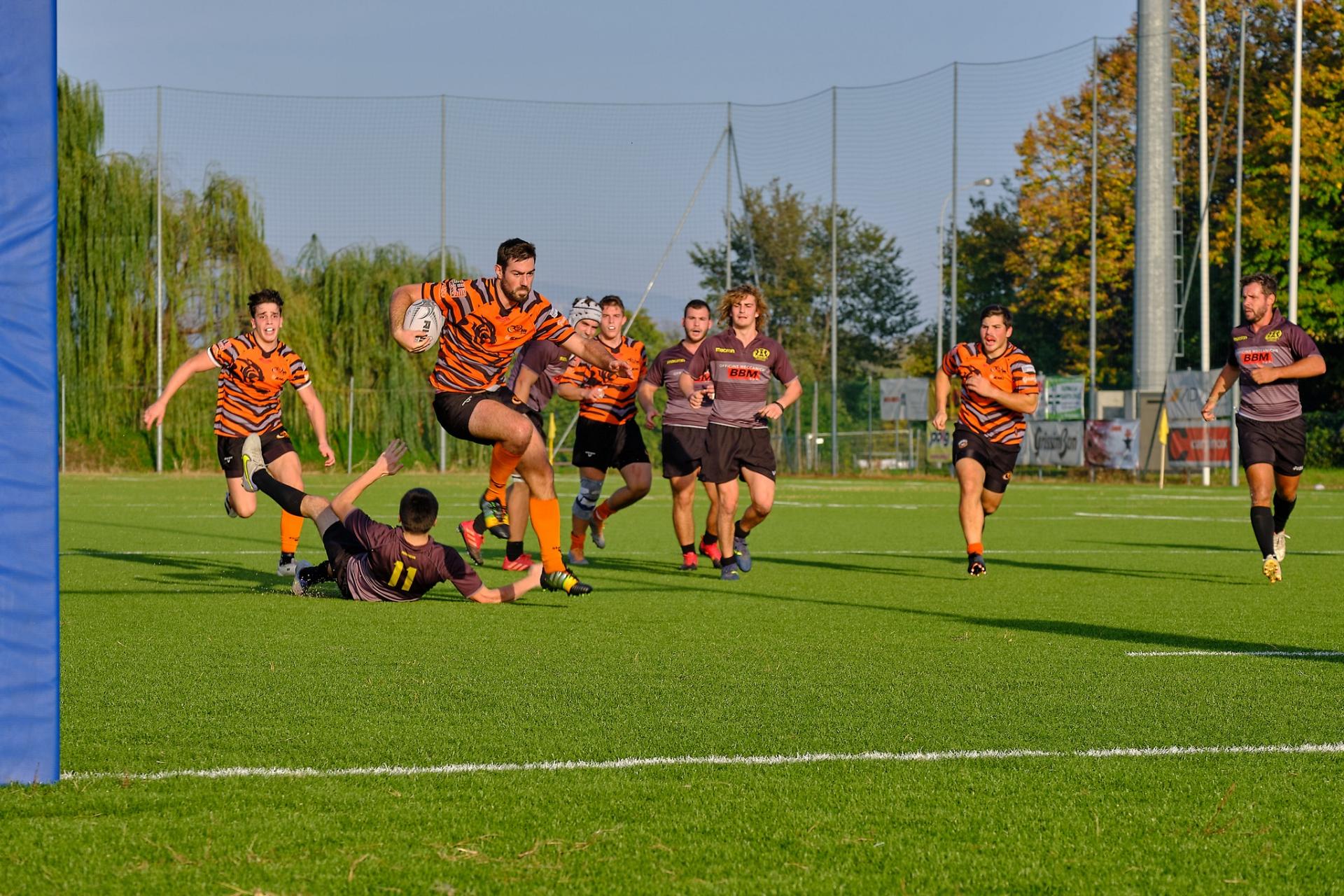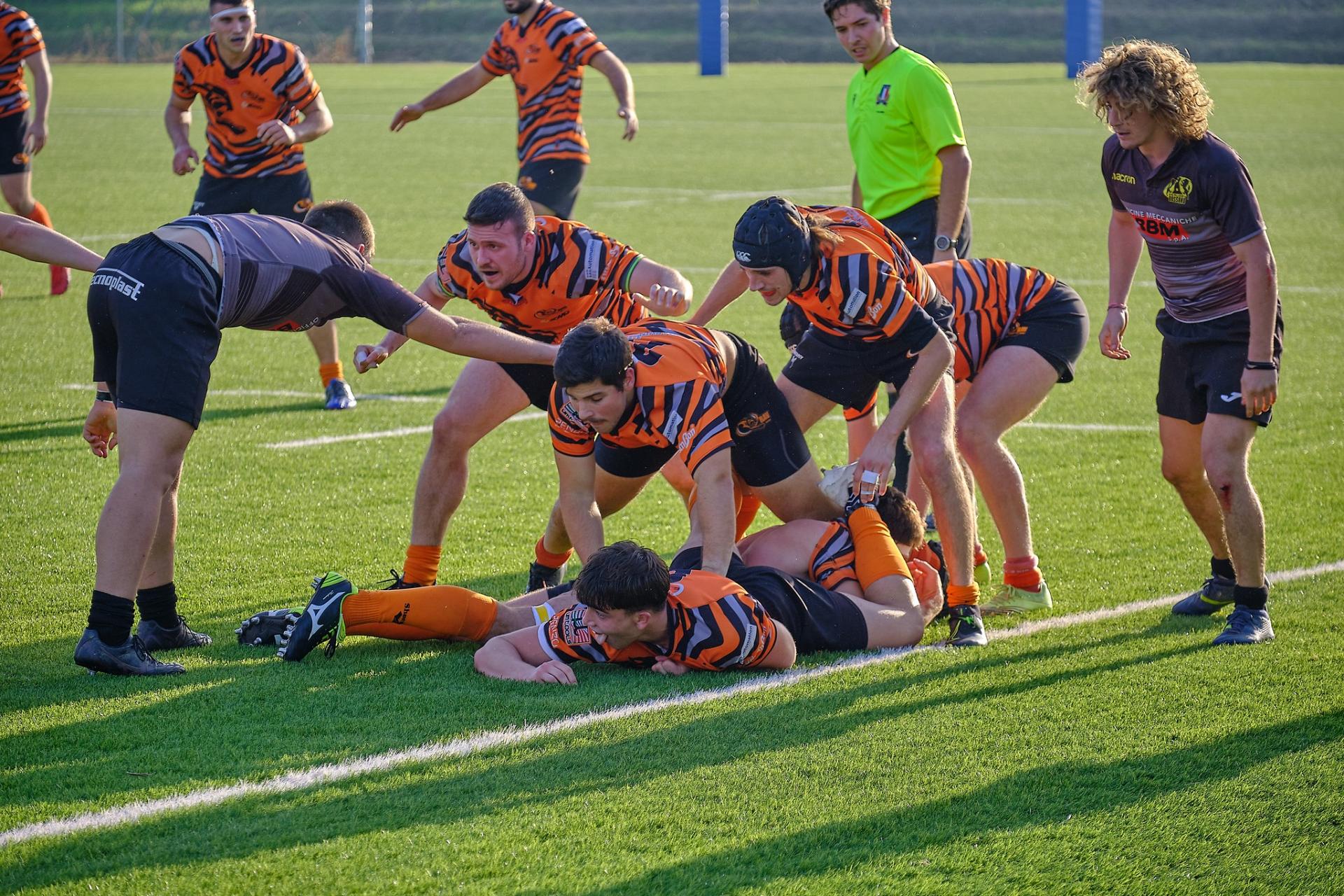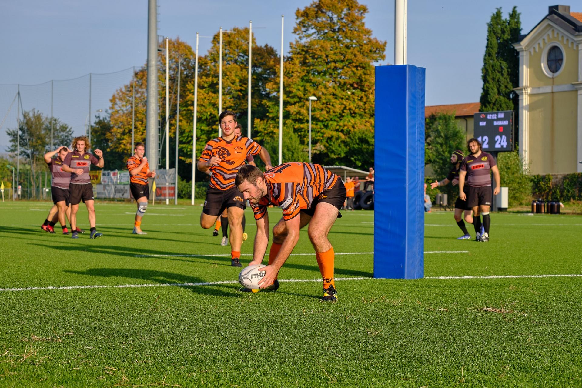 All’ottavo meta annullata al RAV, ma Panozzo con grande intuito segna un minuto dopo in mezzo ai pali per il 5-0 trasf. da Gallo, vista l’assenza di Giacomo Cicciù.