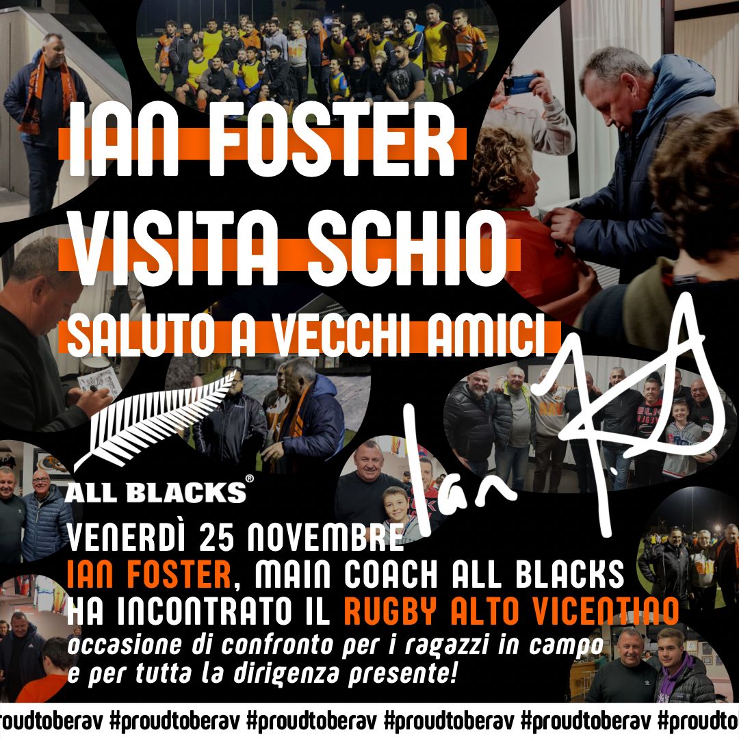 Ian Foster è un grande allenatore, non a caso è l’Head Coach degli All Blacks, ma trova sempre il tempo di far visita ai vecchi amici della gioventù, di quando giocava fra le fila del glorioso Titanus Rugby, un team che grazie alla lungimiranza di Diego Dalle Carbonare e di Fabrizio Lorenzi, ha saputo ritagliarsi rapidamente uno spazio fra le grandi del rugby che contava 30 anni fa. L’esperienza di quel tempo passato fra amici prima che fra giocatori poi non è mai stata dimenticata ne da Ian ne dalla moglie Leigh (Lee) che lo accompagnava come un’ombra, e mai hanno dimenticato i mesi trascorsi assieme e che sicuramente hanno dato un’impronta Italiana al grande Ian Foster.