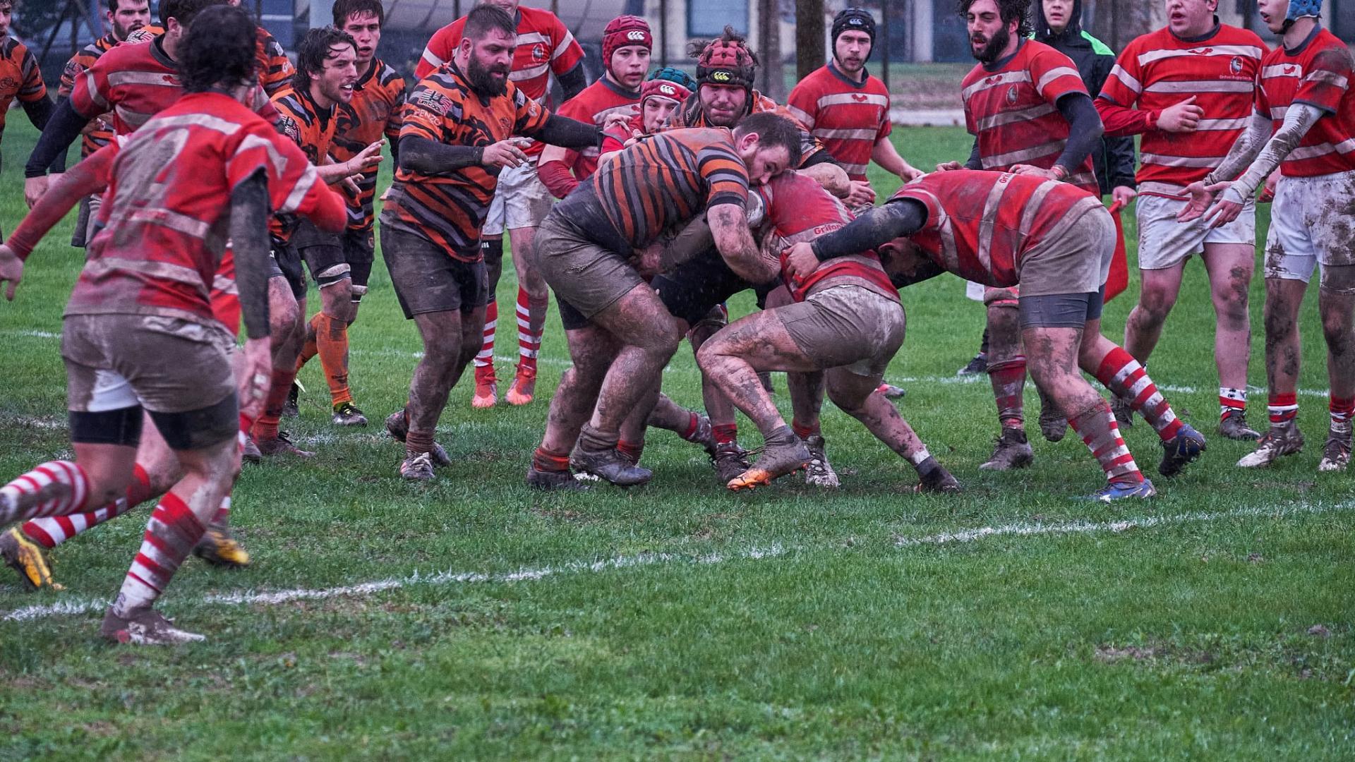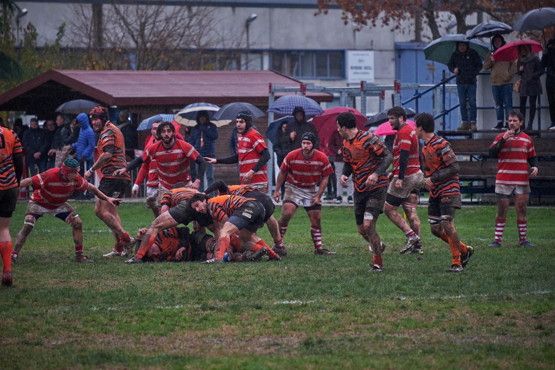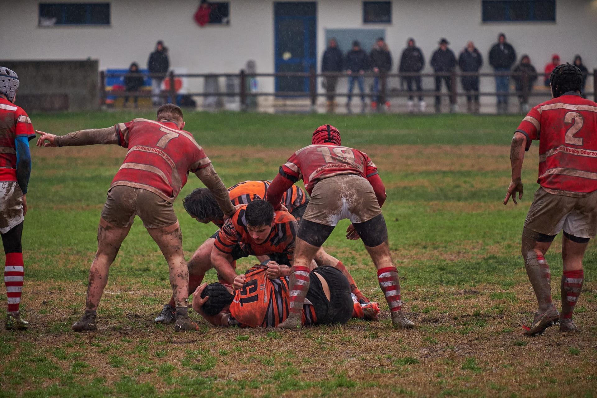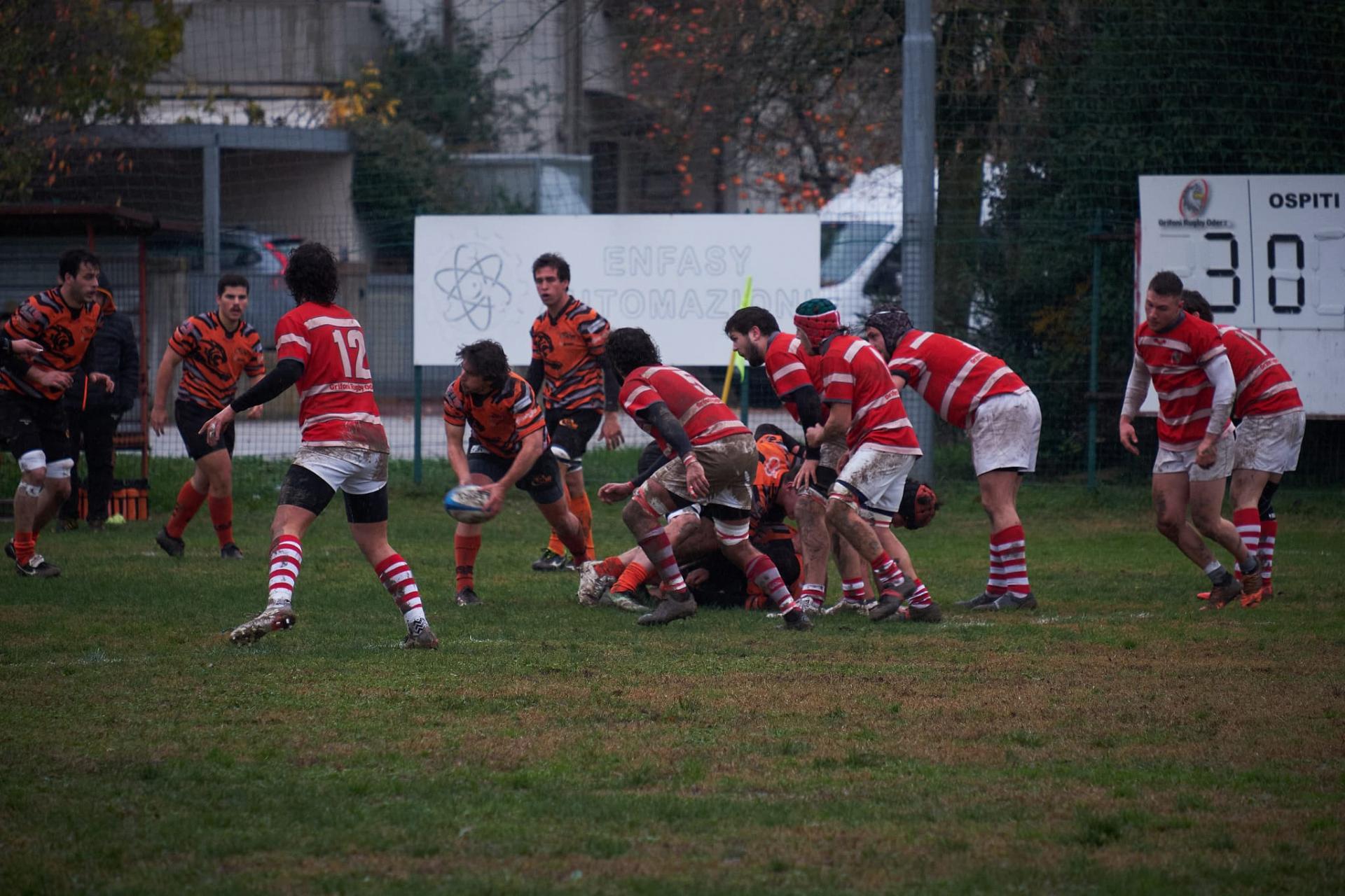 Si parte con un bel calcio del Nr°10 dei Grifoni che ha mandato palloni a destra e sinistra per tutta la partita con una capacità notevole, mettendo spesso in difficoltà dietro il RAV, che va a segno ed è subito 3-0 per l’Oderzo. Si gioca come dicevo a centro campo a causa dei numerosi avanti e della pioggia fastidiosa con mischie da ambo i lati, fino al 24° quando Nicola Beghini finalizza in meta una mischia RAV avanzante e spesso imbarazzante per gli avversari. Purtroppo Dalla Pozza non trasforma e si rimane sul risultato di 5-3 per il RAV. Del primo tempo c’è poco da aggiungere se non che fra mischie e calci in touche si arriva alla ripresa, dove finalmente cambia qualcosa.