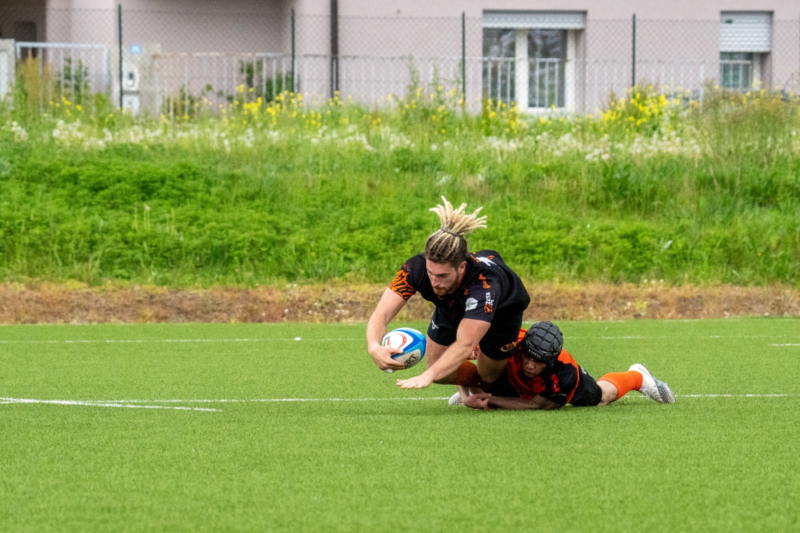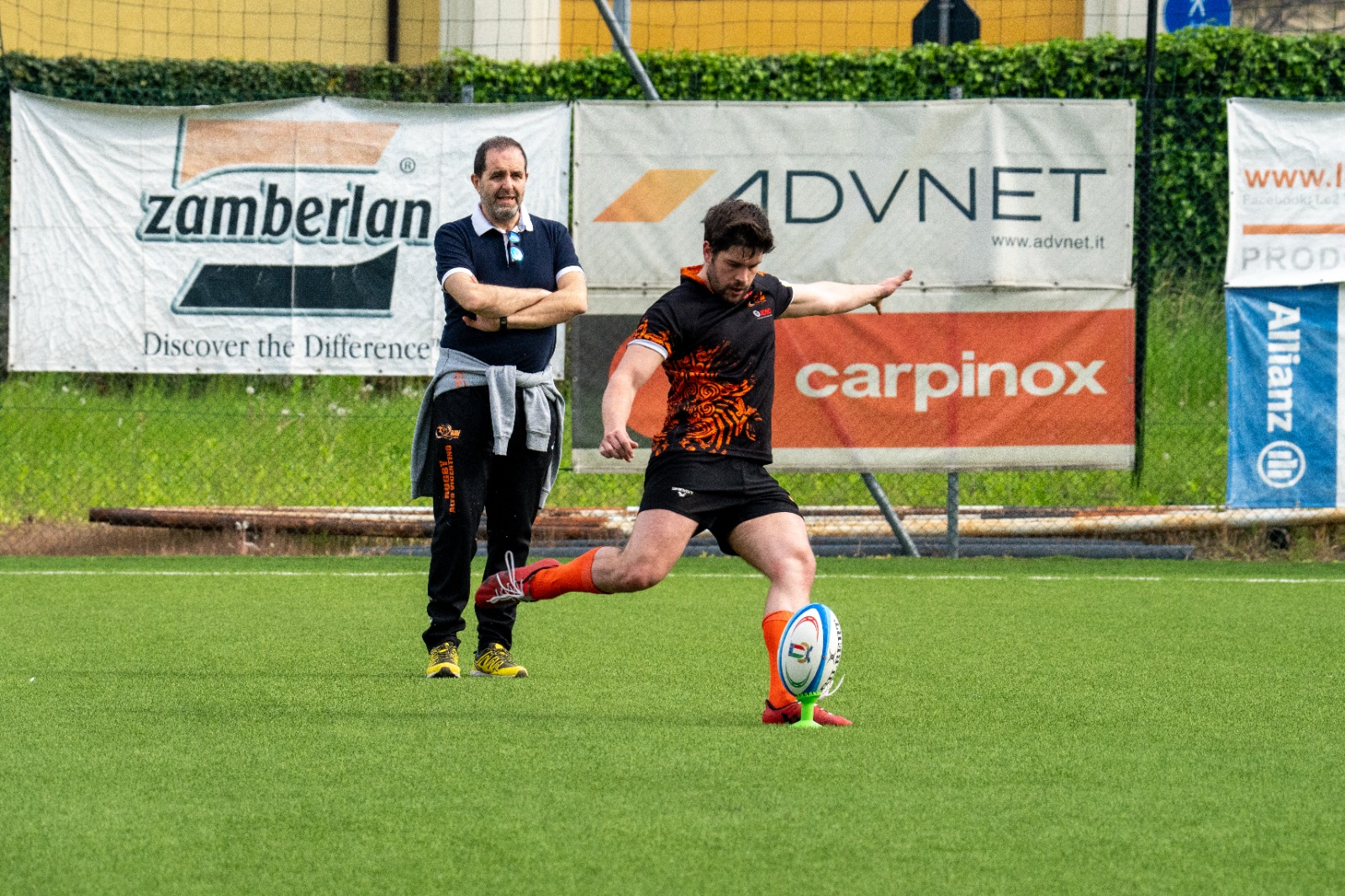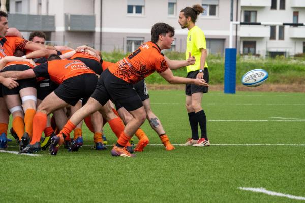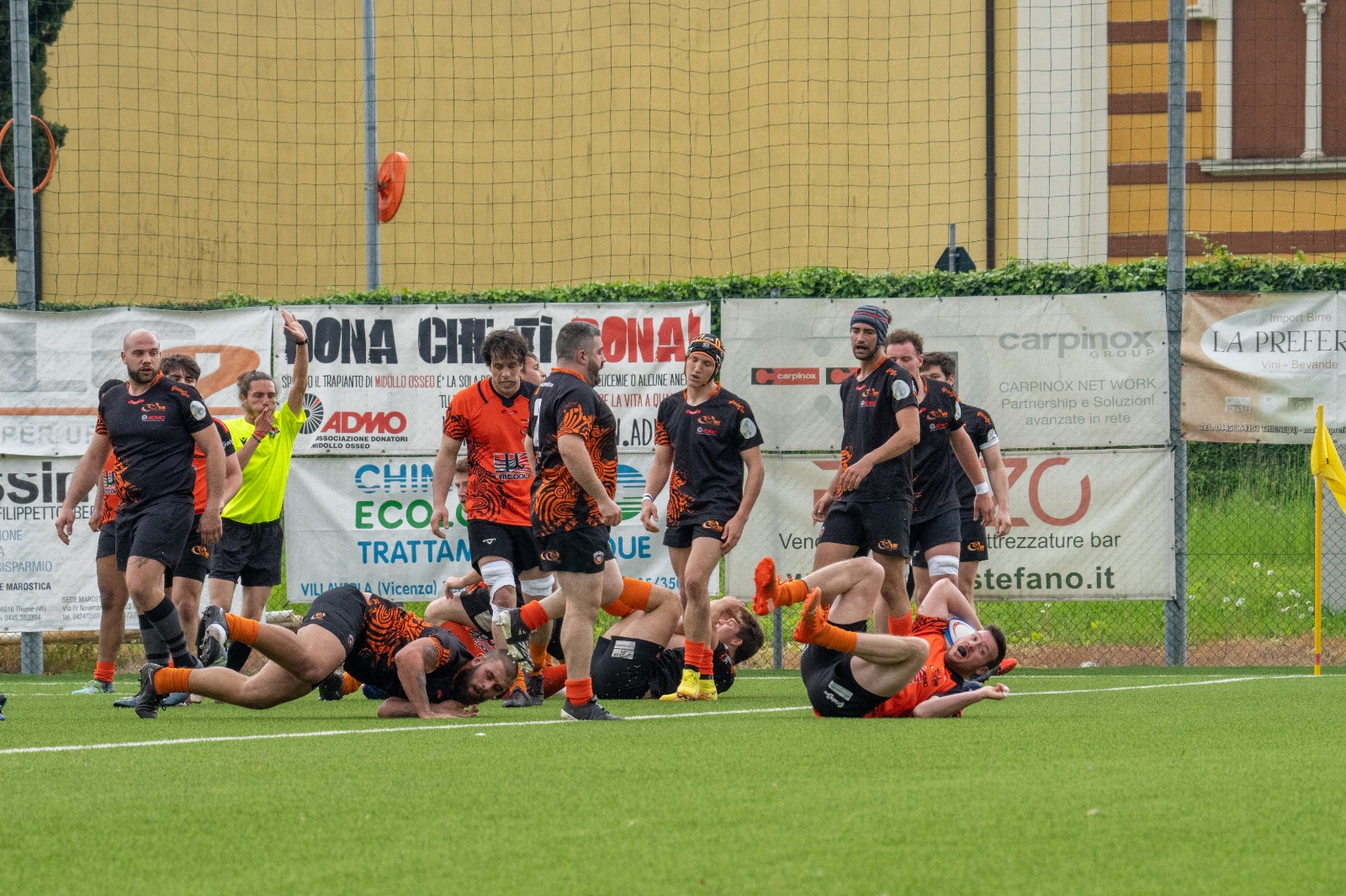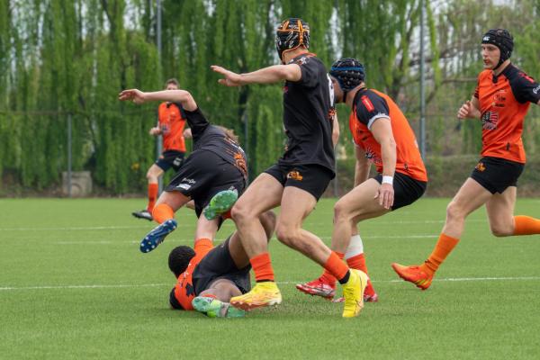 Altra cosa la ripresa con i Neri, strigliati a dovere dal Mr. Rangone che motiva i ragazzi a dare di più, e si vede che il cambio di passo e la pressione portata danno i frutti sperati, prima con una meta che vale l’avvicinamento 17-19 poi il sorpasso per il 22-19 ed infine un calcio che vale il 25-19. Gli Arancio non ci stanno ed in un ennesimo capovolgimento di fronte segnano con un ritrovato Prosdocimi e dopo la trasformazione si portano sul 25-26. Mancano 10 minuti ed i Neri con notevole caparbietà e prestanza fisica riescono a segnare ben 2 mete chiudendo l’incontro sul 35-26.
