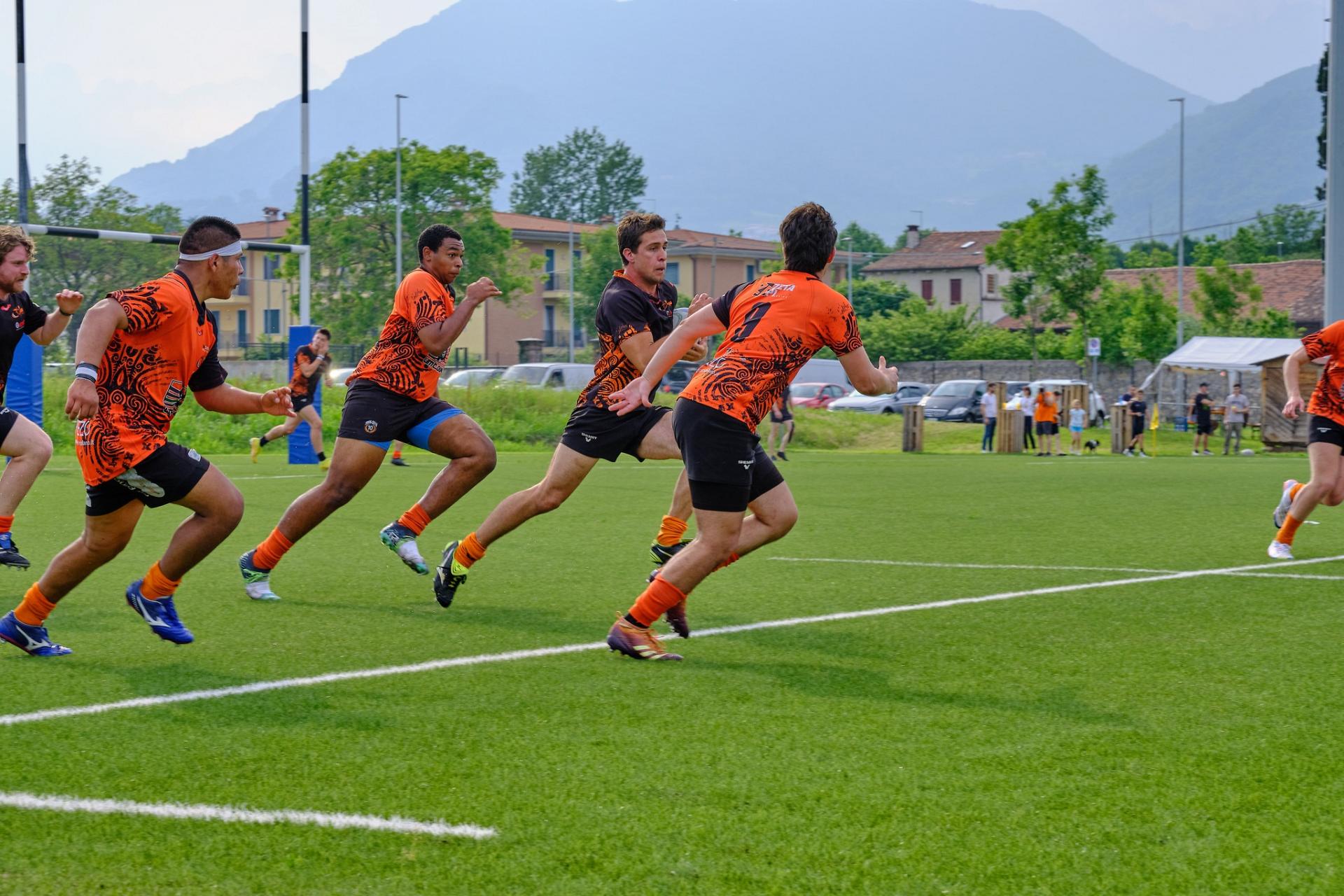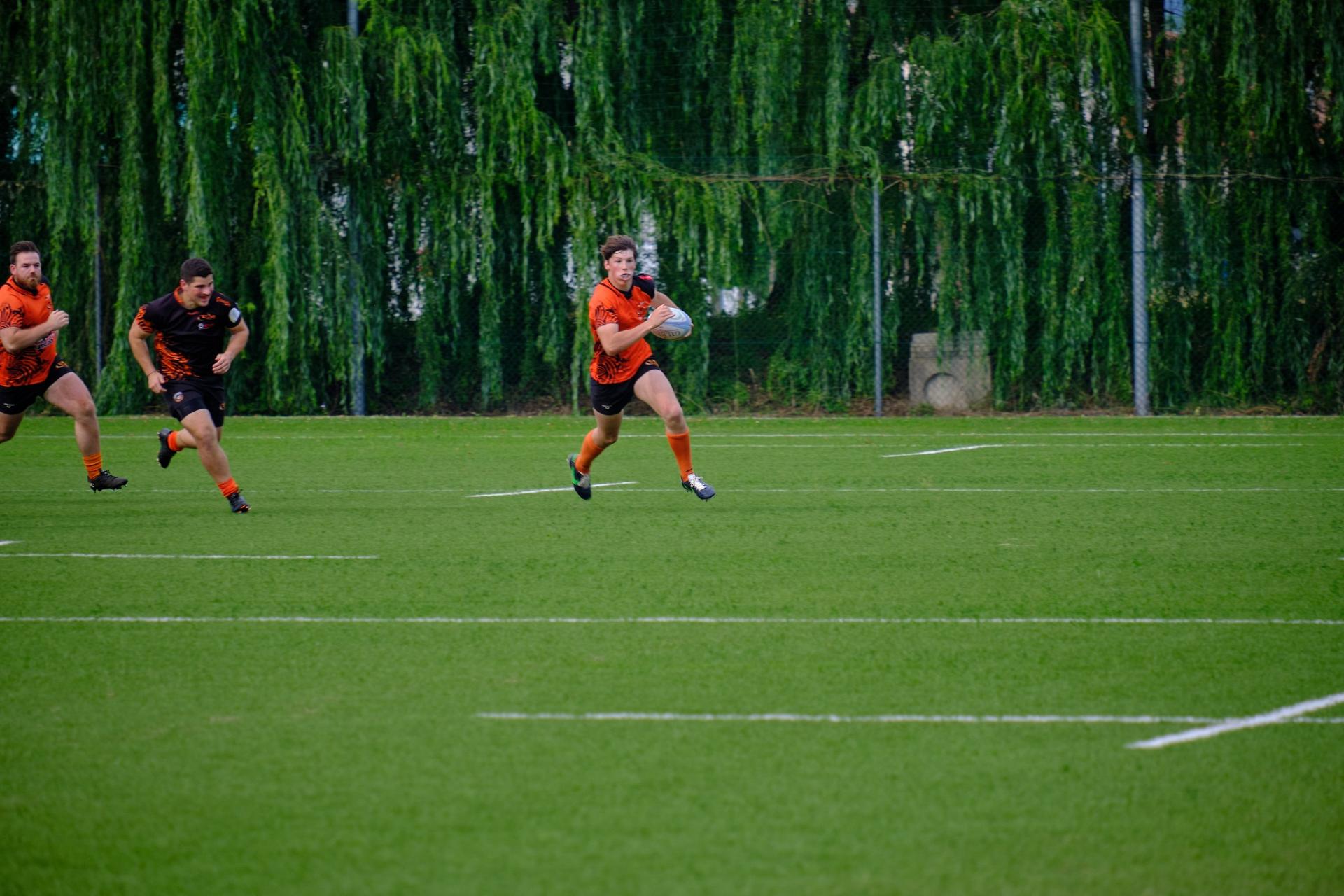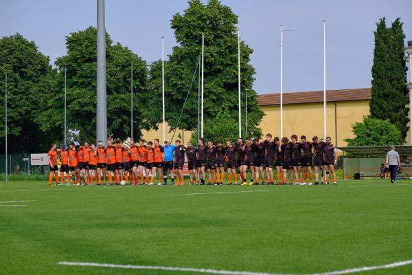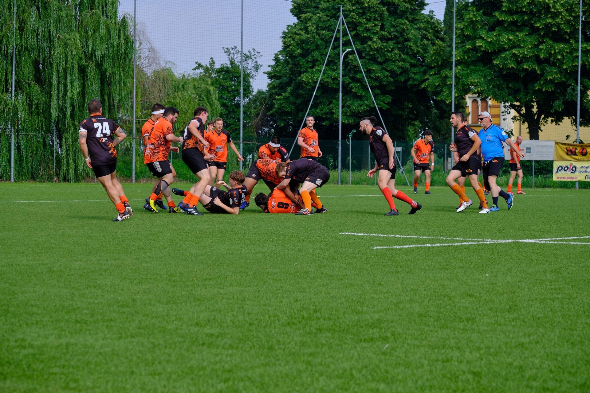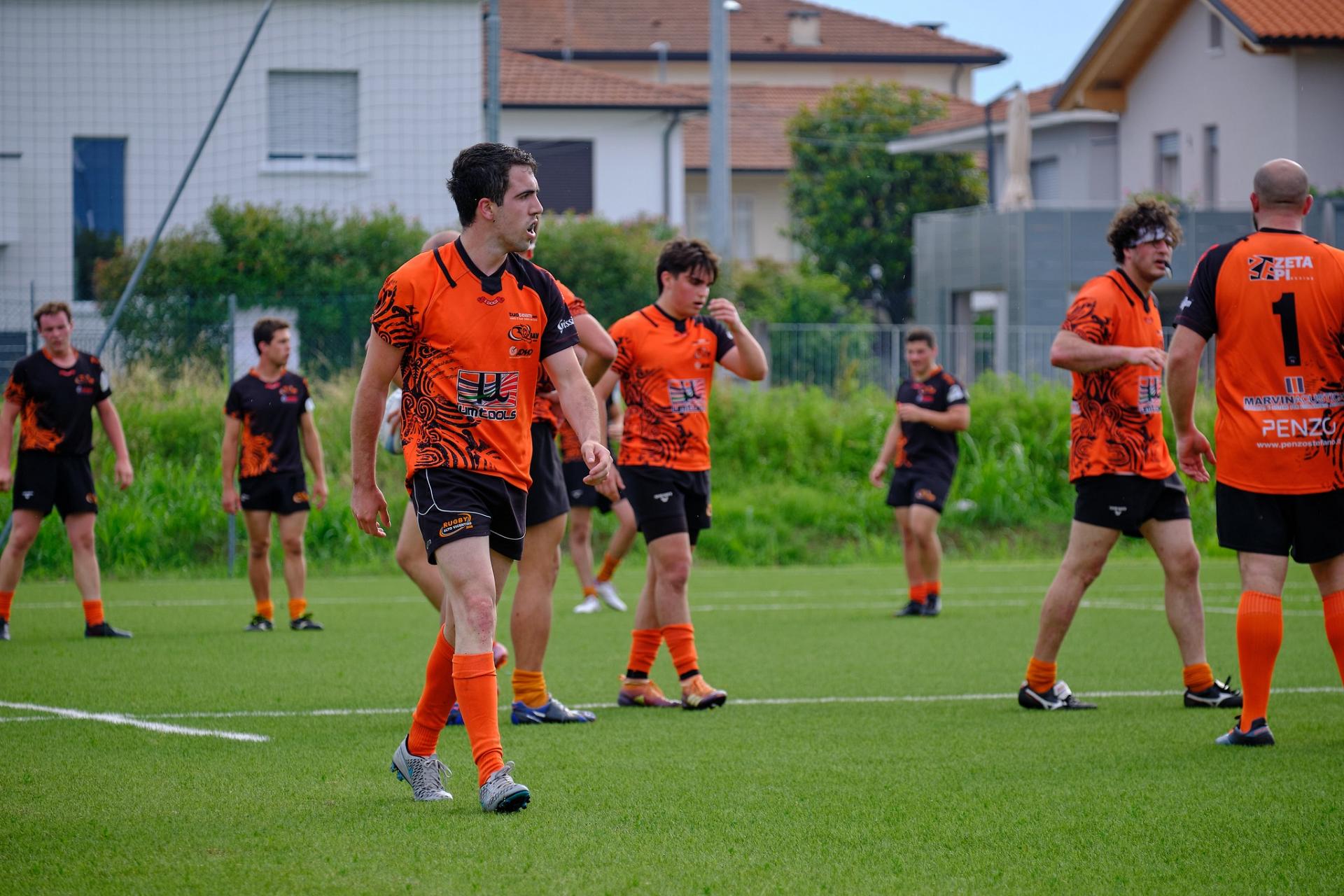 Era evidente che fin da subito gli Arancio cercassero la riscossa vista la sconfitta patita all’andata, e dopo solo due minuti si portano in vantaggio con Munala per il 5-0 prontamente trasformato da Cicciù che porta sul 7-0 la compagine Arancio. Dopo alcuni minuti si vedono i neri accorciare con Fantato non trasforma Castello e si va sul 7-5, risultato che cambia in prossimità della pausa acqua quando un ottimo spunto di Bicego permette agli arancio di passare ancora per il 14-5 dopo la trasformazione. Apertura del secondo quarto con Castello a segno anche se fallisce la trasformazione ed al 25° siamo 14-10 per gli Arancio che segnano altre due mete con Cicciù e Beghini per il risultato di 24–10 all’intervallo lungo. Alla ripresa del gioco, altro spunto dei giocatori Arancio che prima con Cicciù e poi con Conzato si portano sul 34-10, risultato che cambia ancora al 21° del secondo tempo 34-15. L’ultimo quarto dopo la seconda pausa acqua vede prima la meta di Balasso per il 34-20 che riapre i giochi per il premio finale, ma subito dopo la meta di Penzo trasformata che vale il 41-20 chiude ogni possibilità di vittoria agli Arancio. La meta finale di Conzato trasformata dal solito Cicciù chiude l’incontro con il punteggio di 48-20 a favore degli Arancio che si aggiudicano così il Challenge Jacopo De Moro. Premiazione effettuata dai genitori di Jacopo che consegnano il premio al Capitano Arancio Matteo Pegoraro.