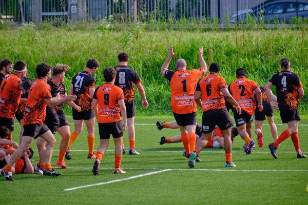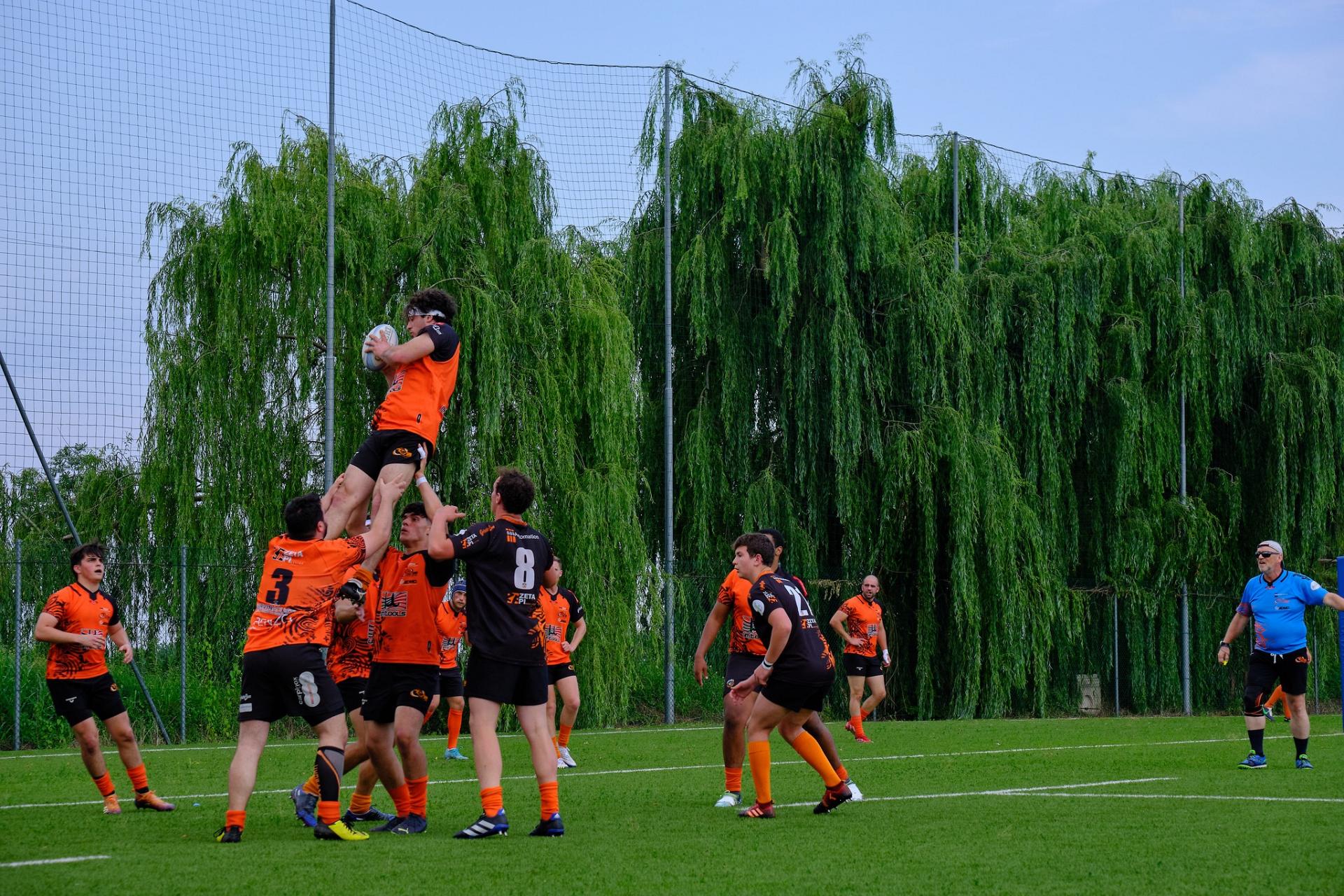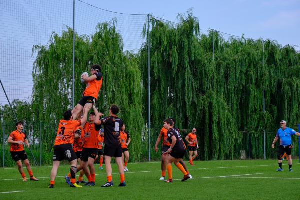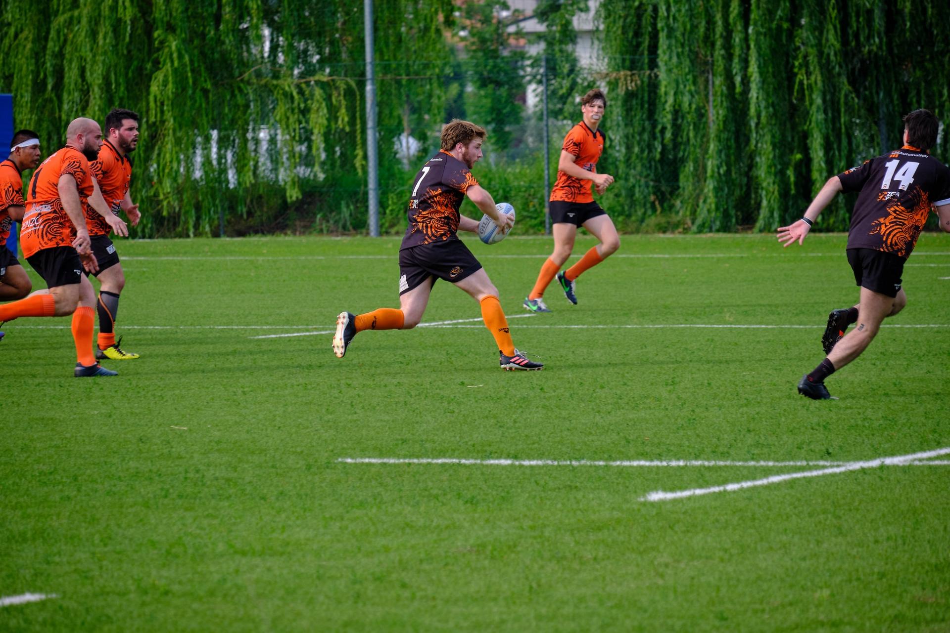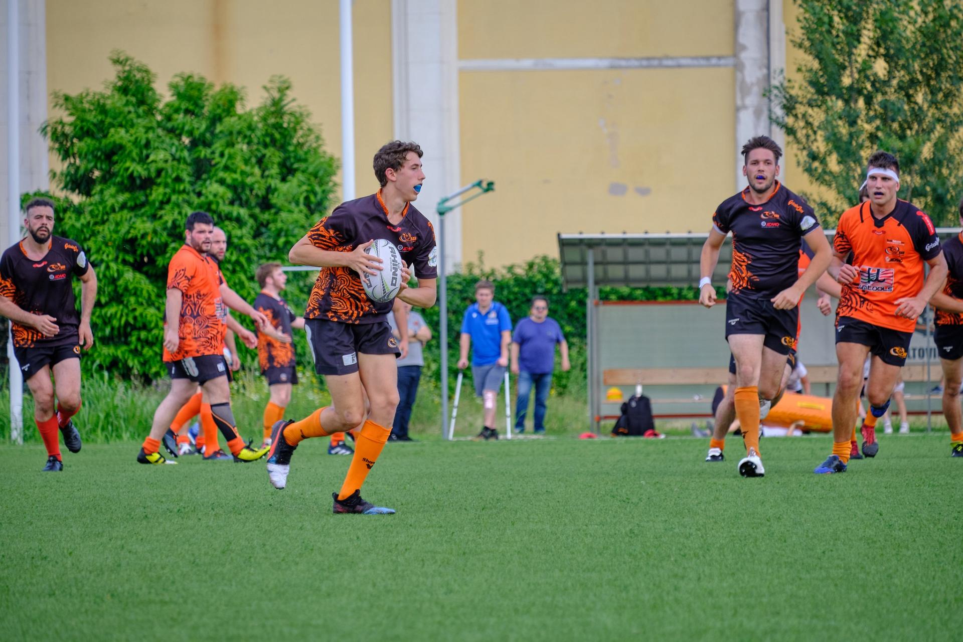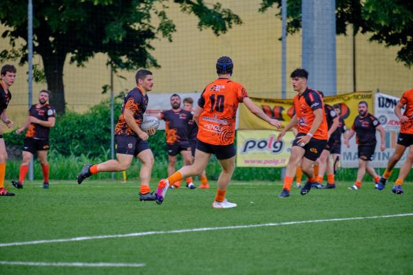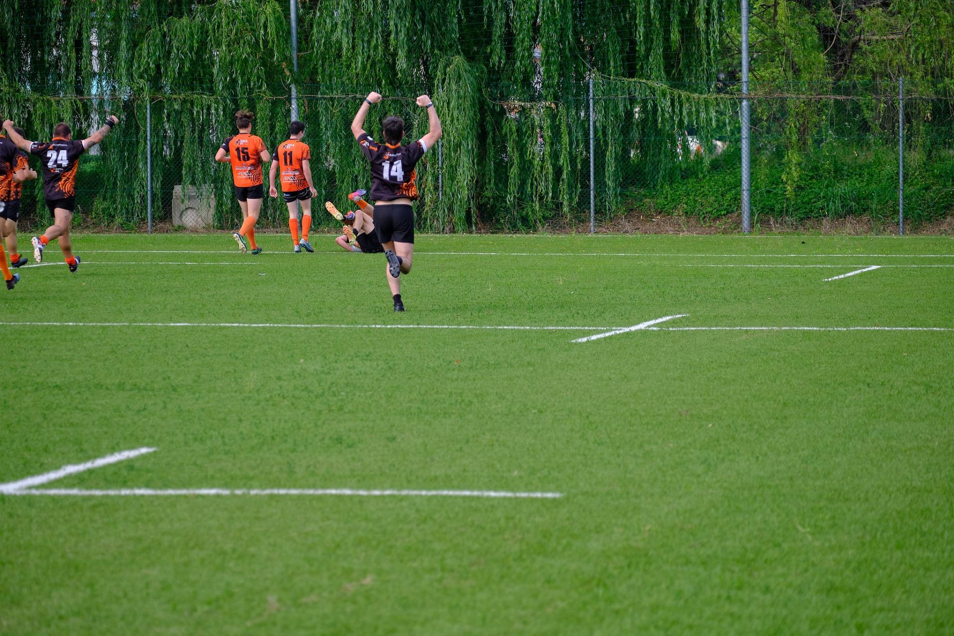 Era evidente che fin da subito gli Arancio cercassero la riscossa vista la sconfitta patita all’andata, e dopo solo due minuti si portano in vantaggio con Munala per il 5-0 prontamente trasformato da Cicciù che porta sul 7-0 la compagine Arancio. Dopo alcuni minuti si vedono i neri accorciare con Fantato non trasforma Castello e si va sul 7-5, risultato che cambia in prossimità della pausa acqua quando un ottimo spunto di Bicego permette agli arancio di passare ancora per il 14-5 dopo la trasformazione. Apertura del secondo quarto con Castello a segno anche se fallisce la trasformazione ed al 25° siamo 14-10 per gli Arancio che segnano altre due mete con Cicciù e Beghini per il risultato di 24–10 all’intervallo lungo. Alla ripresa del gioco, altro spunto dei giocatori Arancio che prima con Cicciù e poi con Conzato si portano sul 34-10, risultato che cambia ancora al 21° del secondo tempo 34-15. L’ultimo quarto dopo la seconda pausa acqua vede prima la meta di Balasso per il 34-20 che riapre i giochi per il premio finale, ma subito dopo la meta di Penzo trasformata che vale il 41-20 chiude ogni possibilità di vittoria agli Arancio. La meta finale di Conzato trasformata dal solito Cicciù chiude l’incontro con il punteggio di 48-20 a favore degli Arancio che si aggiudicano così il Challenge Jacopo De Moro. Premiazione effettuata dai genitori di Jacopo che consegnano il premio al Capitano Arancio Matteo Pegoraro.