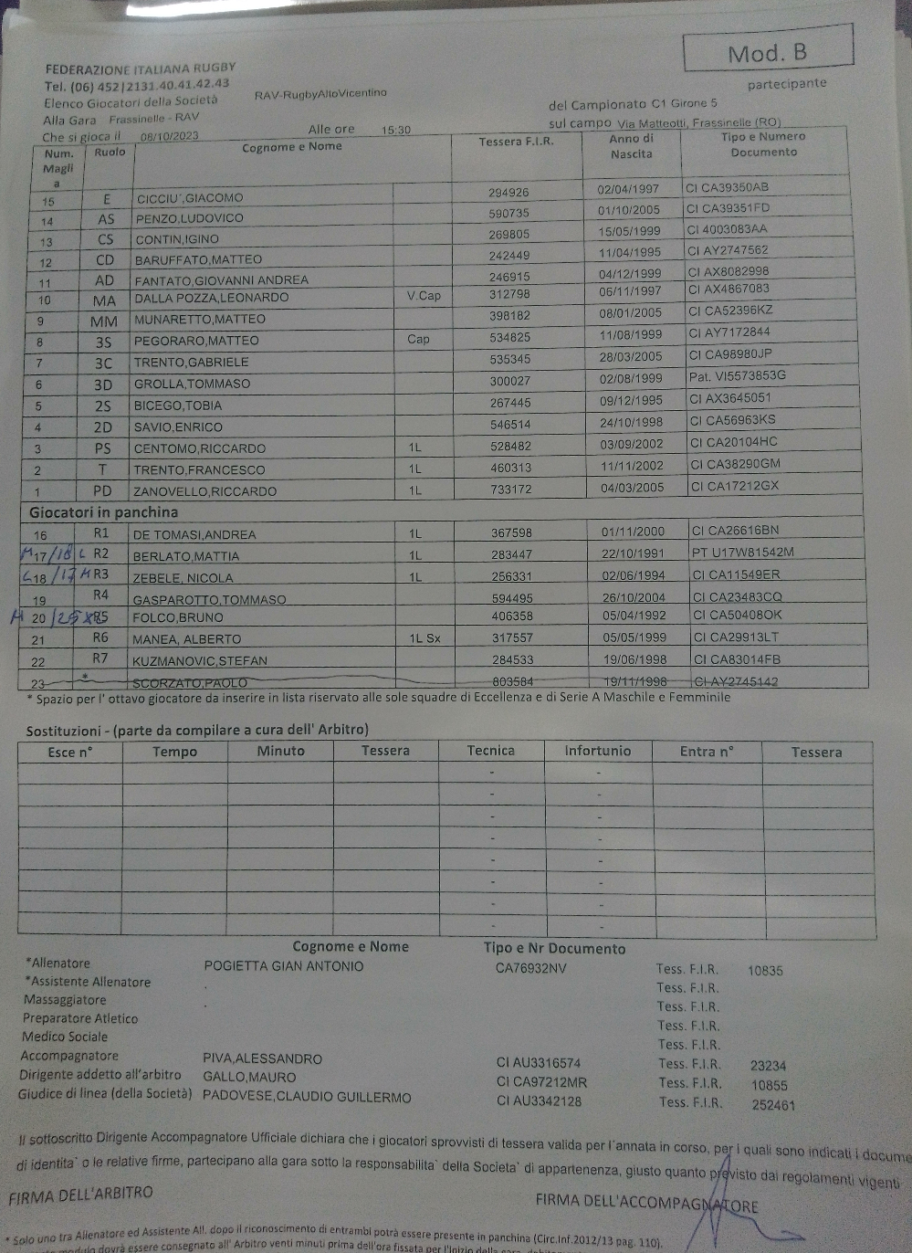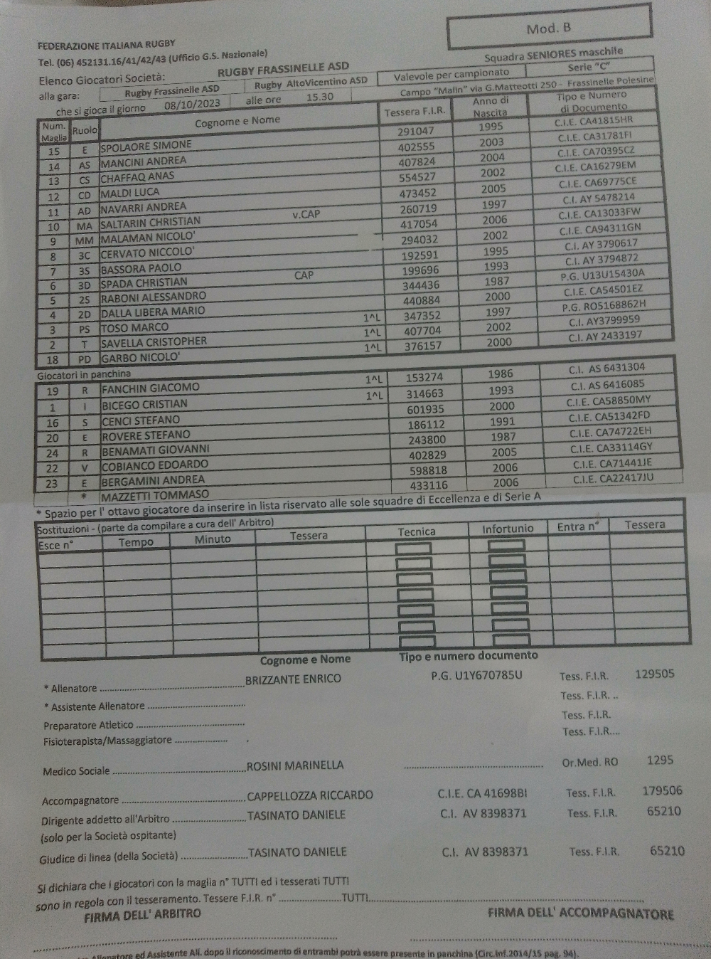 Fino alla pausa acqua non succede più nulla, ma alla ripresa del gioco il Frassinelle sembra avere le idee più chiare e complici alcuni errori da parte dei nostri giocatori passa il Frassinelle con il Nr.14 mentre la trasformazione successiva esce e si va sul RAV 15 Frassinelle 5. Il Rav non ci sta e prima con Grolla al 37° e poi con Trento Gabriele al 41° mette a segno 2 mete che tagliano le gambe ai nostri avversari e si va al riposo lungo sul 27 a 5 a favore del RAV e con solo 4 mischie di cui la prima al 23° che ci hanno comunque visto in difficoltà sul gioco statico. Lavoro per i nostri Coach.