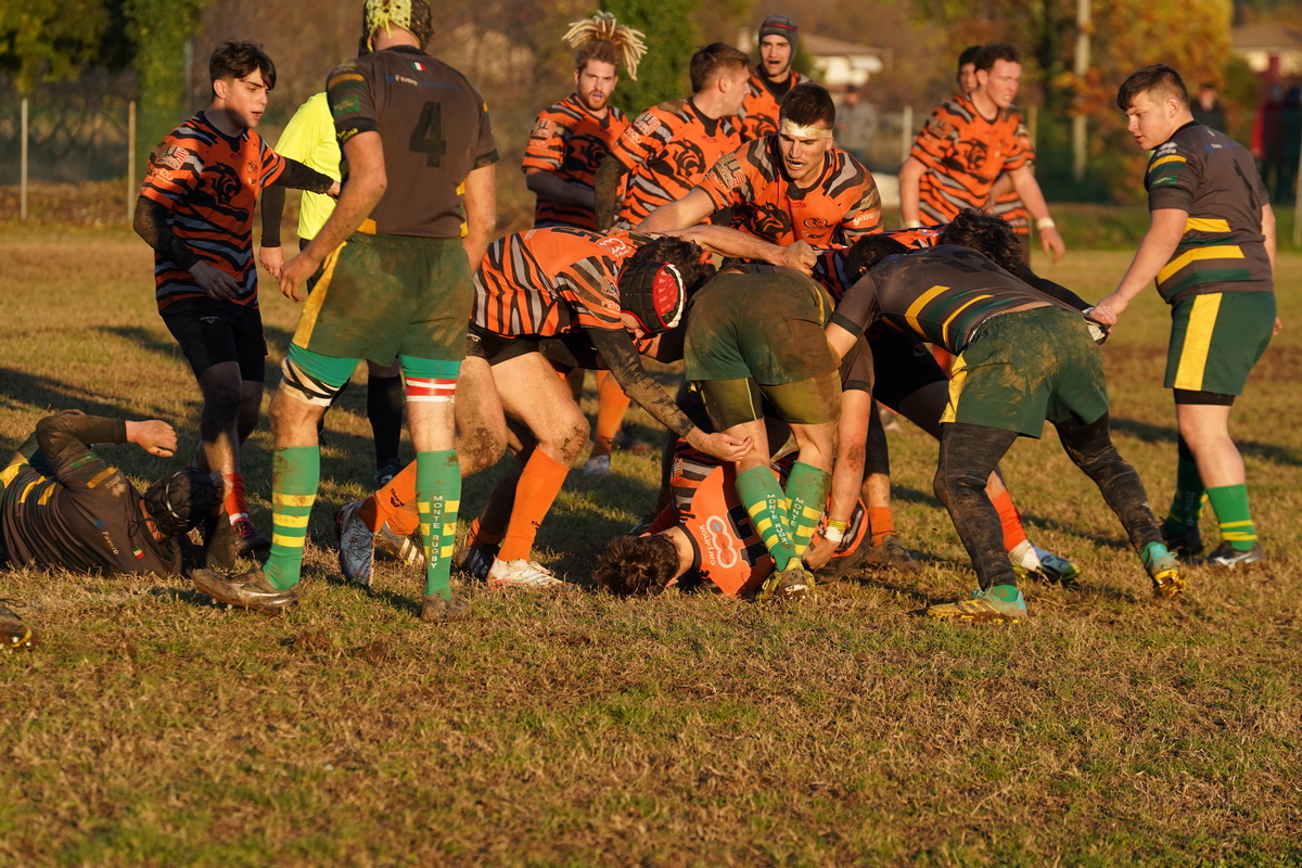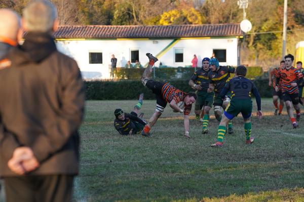 Su un campo pesante con la mischia chiusa in netta difficoltà fin dalle prime battute, Si inizia con un pregevole calcio dell'apertura del Montebelluna, Pellizzari che con ottimi calci ha piazzato quasi tutti i calci a sua disposizione.Si arriva al 21° e meta del RAV da touche che oggi ha funzionato, trasforma Cicciù, Monte 3 RAV 7. In un attimo si passa al 6-7 meta RAV con Castello NT e meta immediata del nr°9 del Monte per il sorpasso 13-12. Ribaltamento di fronte a tempo scaduto e Fantato segna la meta del 17 a 13 per il RAV e si va al riposo. Secondo tempo e meta del sorpasso 17-20. Il Monte allunga ancora con un piazzato 23-17 sembra il ko ed invece da ottima giocata Manea segna per il 24 a 23 del RAV. Calcio e meta per il Monte ed al 32 siamo 31-24 per il Montebelluna, vigorosa reazione del RAV meta di Zanin e parità. Allo scadere Jack con un preciso calcio chiude l'incontro per il finale di RAV 34 Montebelluna 31.