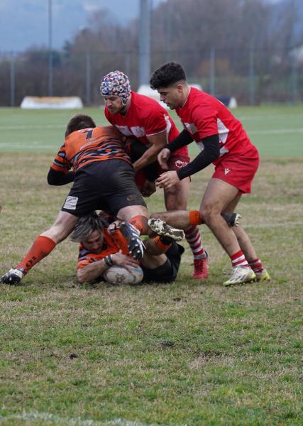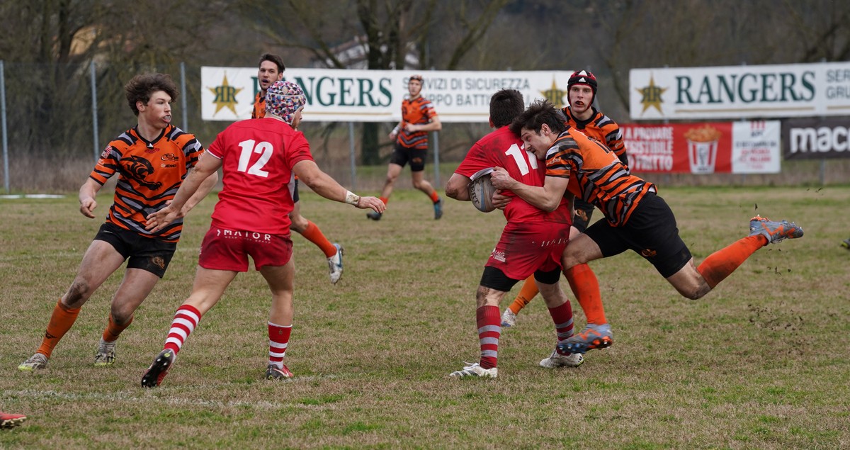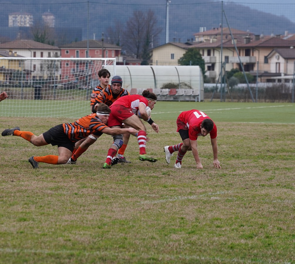 Vicenza aggressivo, il RAV non interpreta correttamente nel primo tempo le decisioni arbitrali in mischia, facendo diversi falli che ci costano ben 3 gialli e molte difficoltà a giocare con i trequarti. Tuttavia non abbiamo mai dato segni di cedimento fisico e mentale e nonostante l’inferiorità numerica con una meta di Andrea De Tomasi oggi MVP, la trasformazione di Giacomo Cicciù e 2 piazzati, restiamo agganciati al Vicenza con il parziale di Vicenza 16 RAV 13
