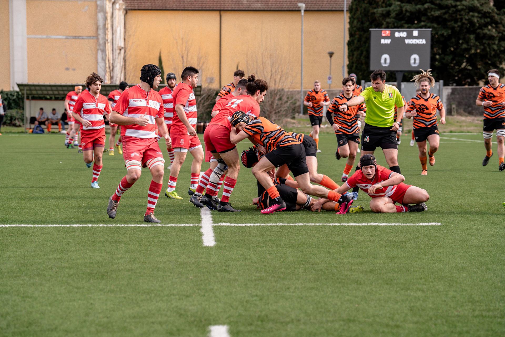 Due calci per il RAV fra i pali sanciscono il momentaneo sorpasso RAV, ma il Vicenza a seguito di una azione prolungata, dopo il giallo a Pegoraro, segna da piazzato e rimette la testa davanti RAV 13 – Vicenza 15. Con un uomo in meno il RAV ancora con Penzo va in meta per il 18-15. Sembra fatta ma altro giallo per intercetto, questa volta a Brandi, dallo sviluppo dell’azione meta per il Vicenza al 35° RAV 18 – Vicenza 22. Assalto finale del RAV ma il risultato rimane invariato RAV 18 – Vicenza 22