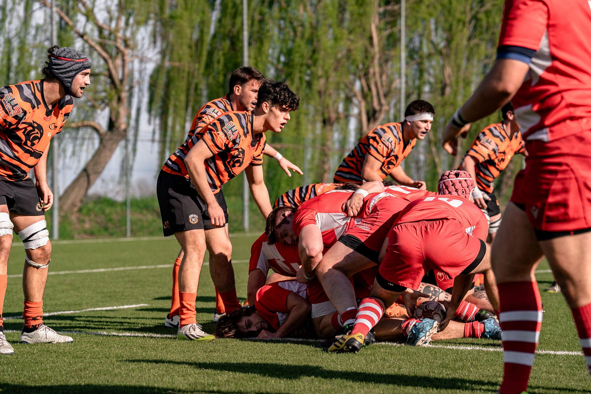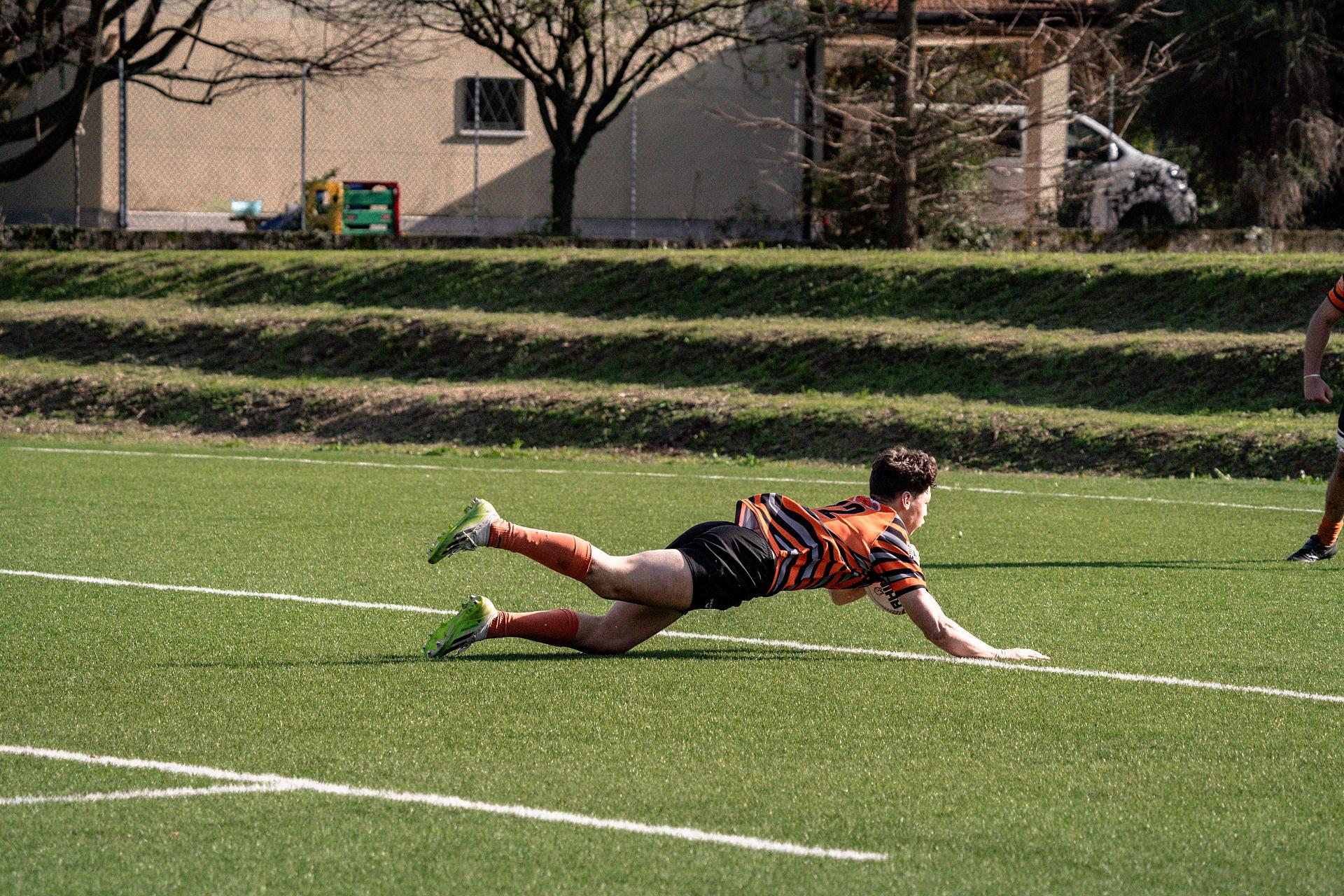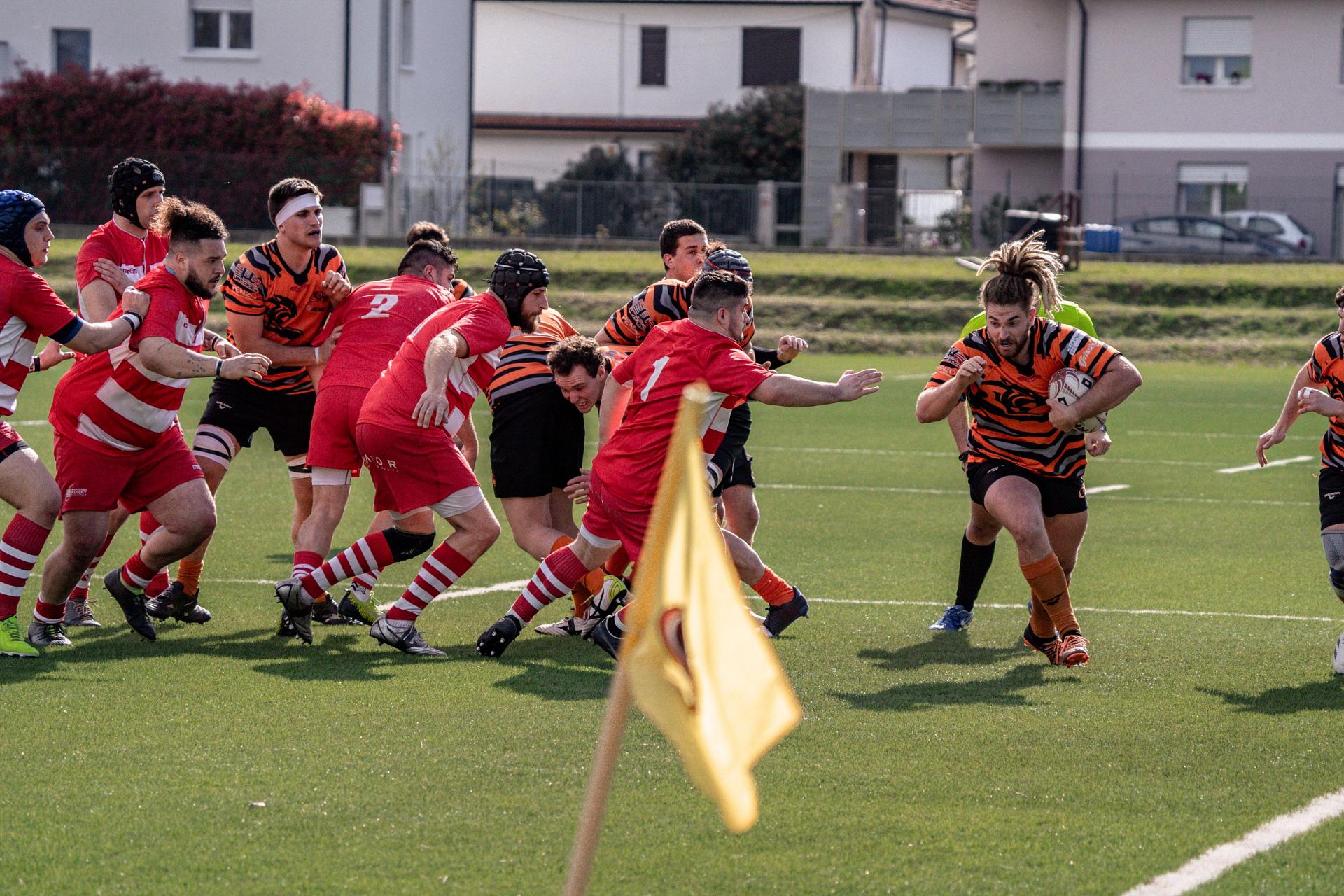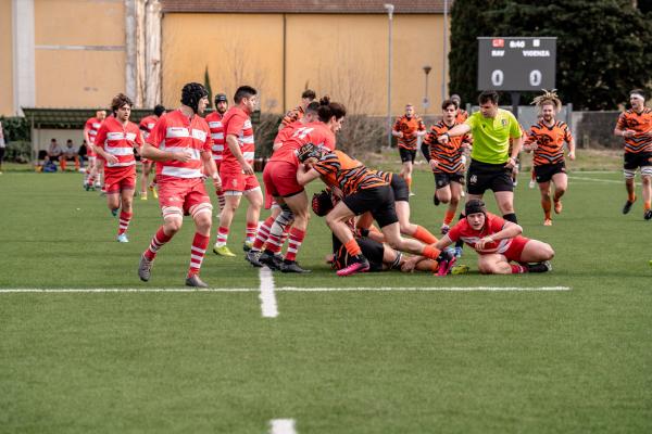 Al 2° minuto infortunio a Merlo entra Trento G., il RAV attacca ma segna una meta, con Penzo solo al 15° dopo un paio di calci sbagliati RAV 7 – Vicenza 0. Il Vicenza non molla e da drive va in meta al 19° per il 7-5 operazione che riesce poco dopo grazie al giallo a Manea per intercetto RAV 7 – Vicenza 12 e così finisce il primo tempo.