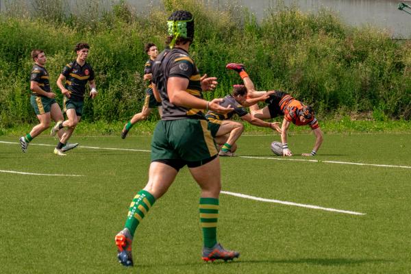 Parte forte il RAV e consci di dover vincere con 5 punti, i ragazzi si impegnano tanto fin dai primi minuti, infatti dopo qualche batti e ribatti al 5° Castello va in meta e Cicciù trasforma per il RAV 7 Montebelluna 0.
