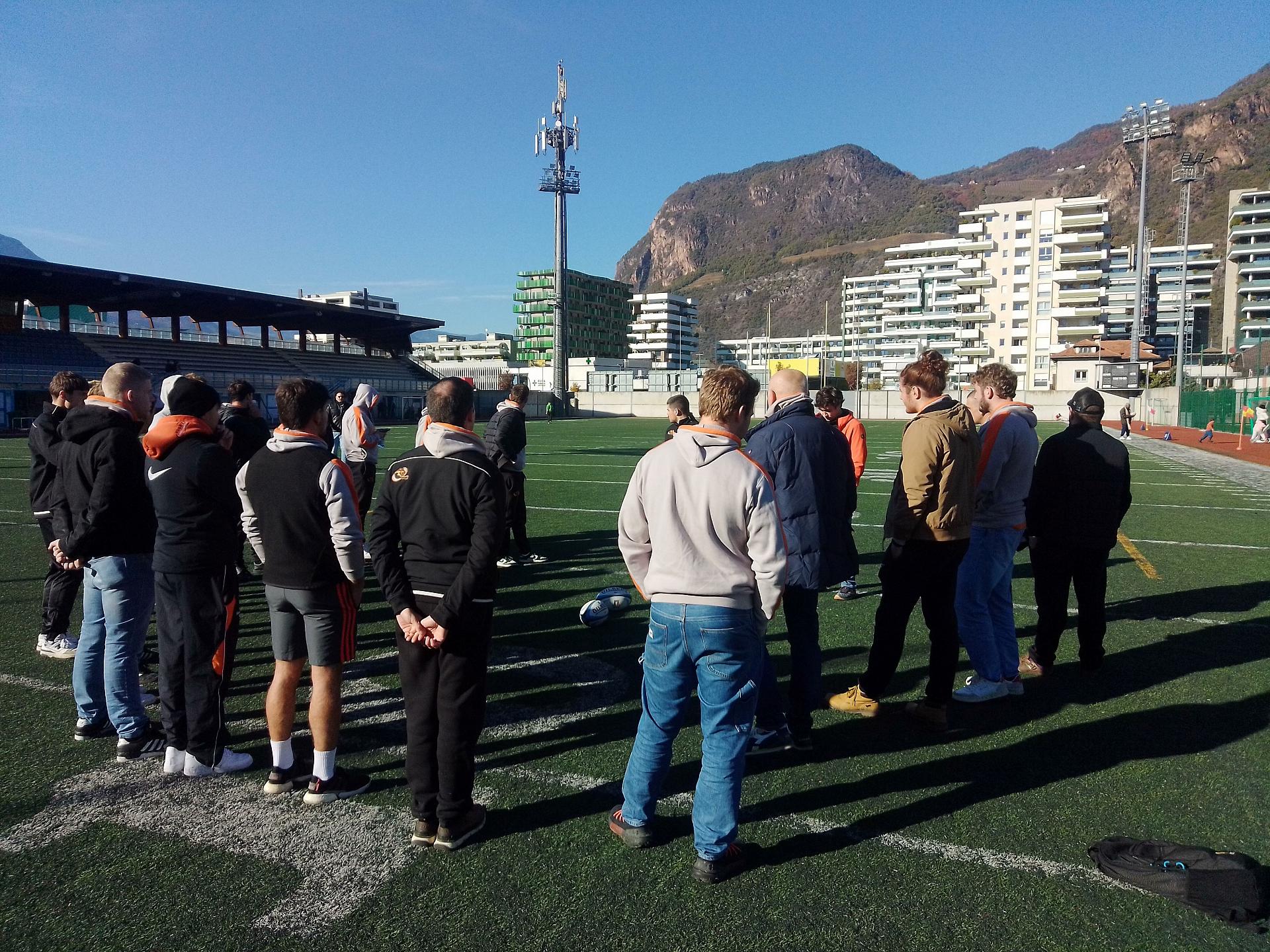 Una squadra rimaneggiata per i tanti infortuni, scende su un terreno di gioco particolare, un campo di football americano, che pur con dimensioni molto ridotte, è conforme alle regole stabilite dalla Federazione.
