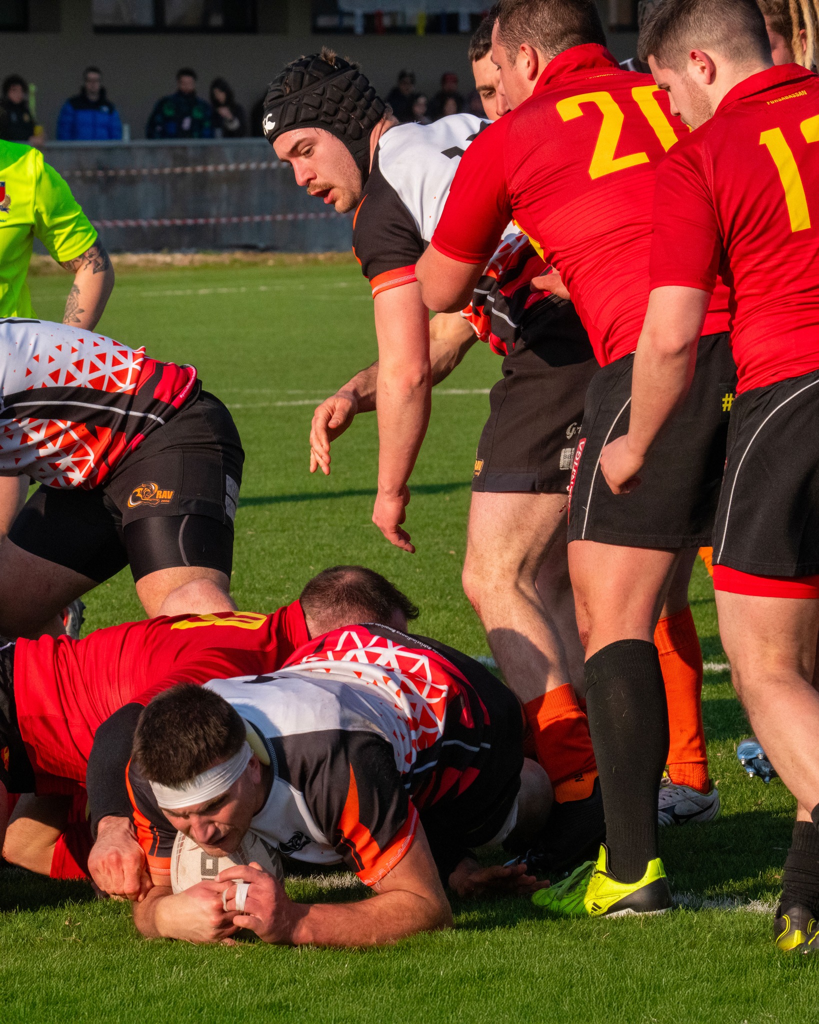 La partita, dopo i primi 10 minuti di incertezza, ha visto la formazione di casa rompere gli indugi ed attaccare con veemenza. Si sono viste azioni negli spazi ristretti ben strutturate, con il pacchetto di mischia aggressivo e deciso, cosi come aperture verso il largo costruite e gestite con ordine. Le poche mischie effettuate sono la chiara dimostrazione che si sono perse poche palle. La concretezza e l’essere cinici sono stati, inoltre, i punti di forza del RAV di oggi. Ogni volta che si entrava nei 22 avversari si tornava con la realizzazione di punti.