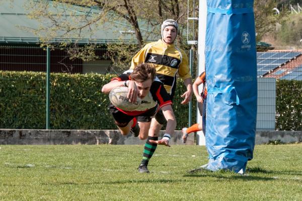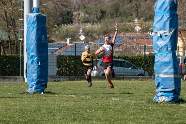 Nella ripresa, i ragazzi scledensi si sono finalmente destati dal torpore, migliorando nettamente la gestione dei punti d’incontro e delle touches. Nei primi dieci minuti, hanno siglato quattro mete, ritrovando fluidità e qualità nelle giocate. Con l’avvio della girandola di sostituzioni, tra i subentrati va menzionato Samuele Bazzara, il quale ha avuto però poco tempo per mettersi in mostra. La gara è stata interrotta anzitempo a causa di un grave infortunio occorso a un giocatore del Lagaria, che ha riportato una frattura alla fronte, costringendo l’arbitro a decretare la fine del match. Va menzionata l’ottima prestazione del giovanissimo Robert Henstock che poi risulterà anche MVP.