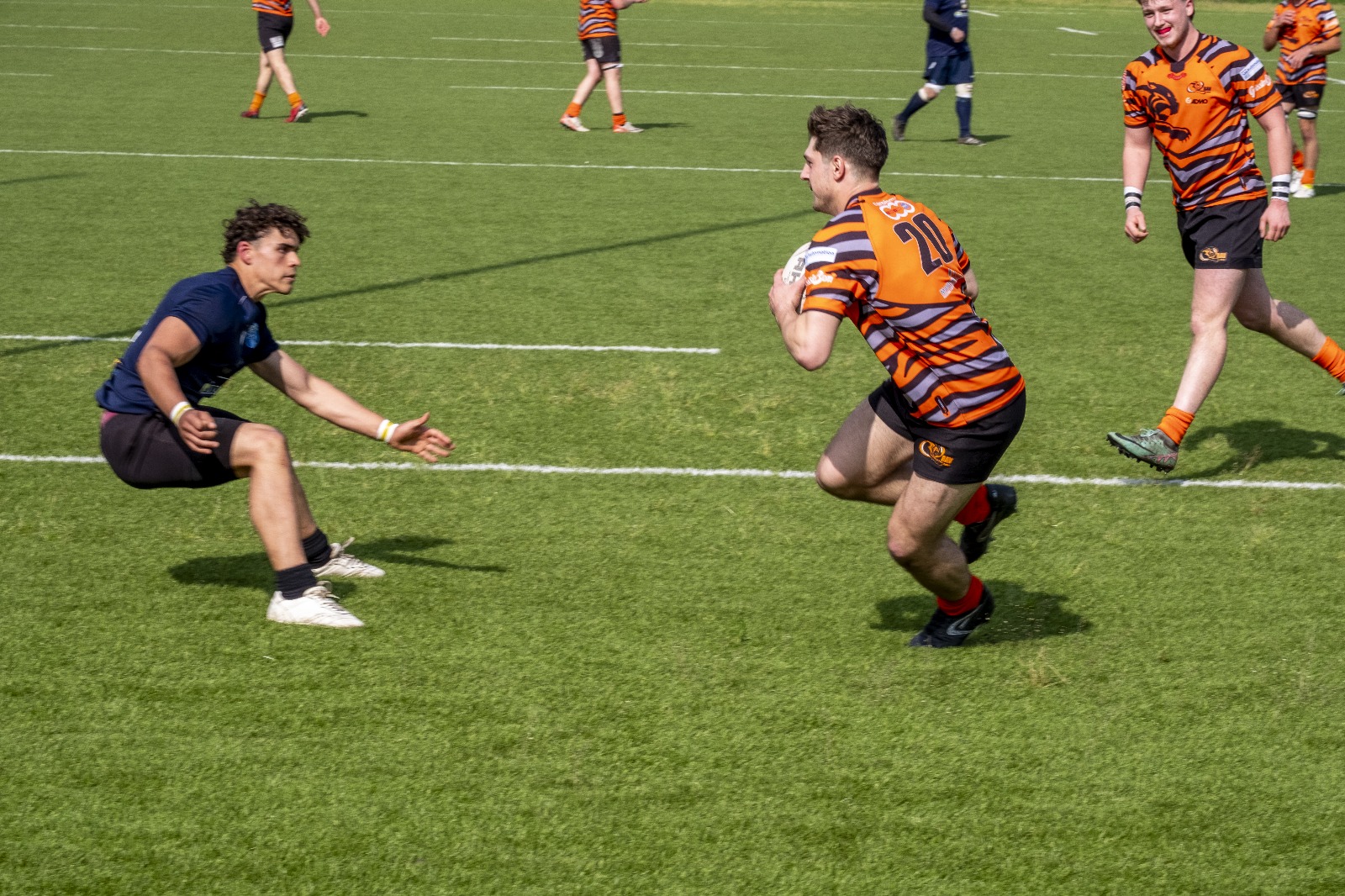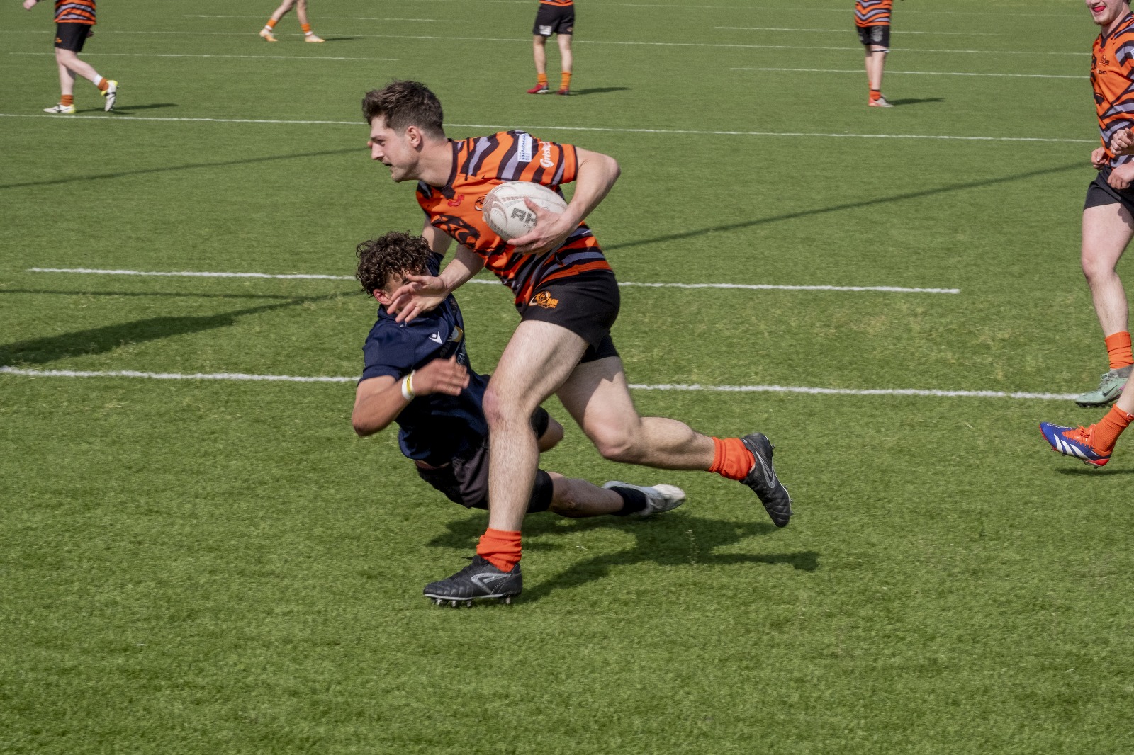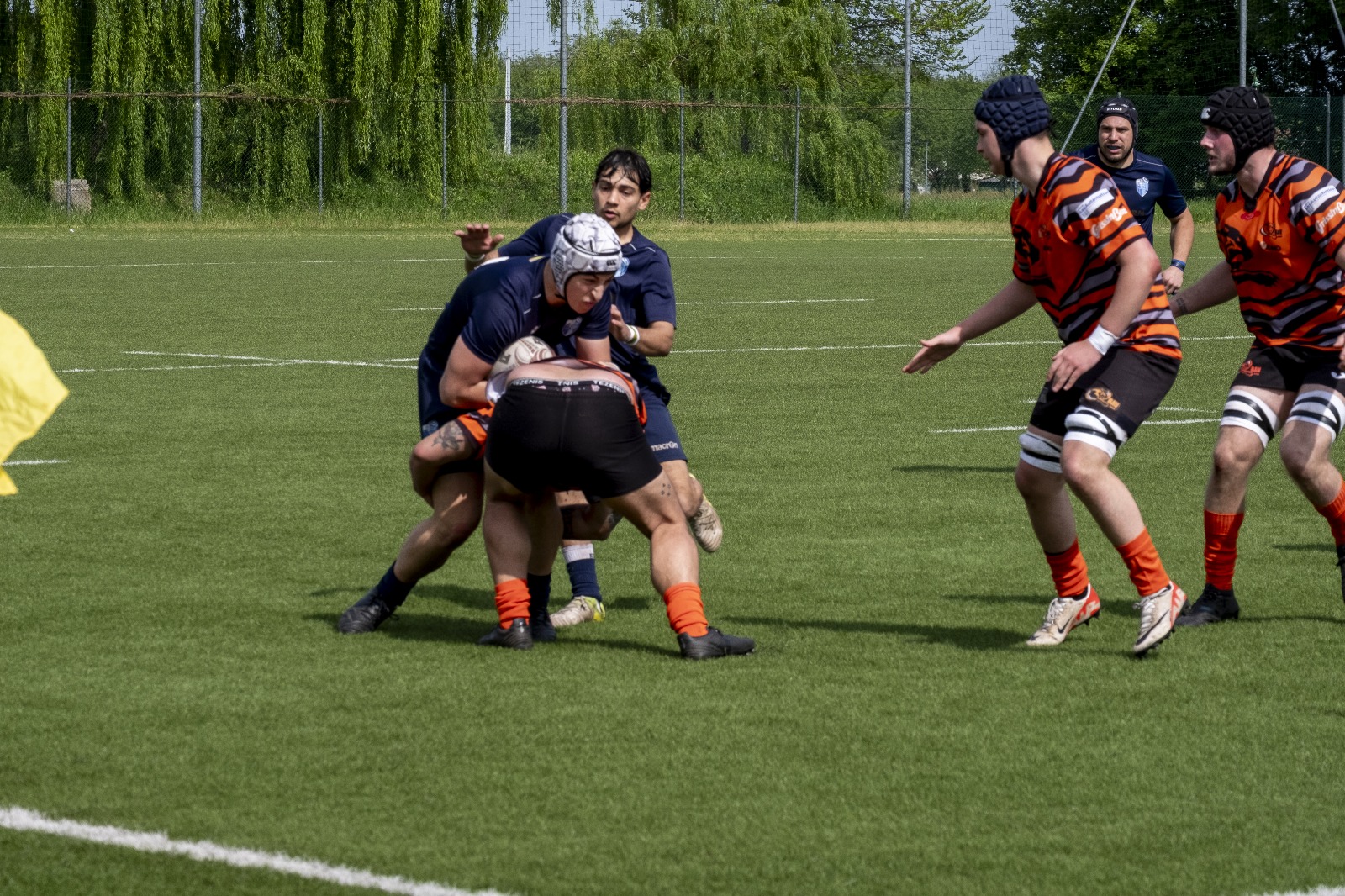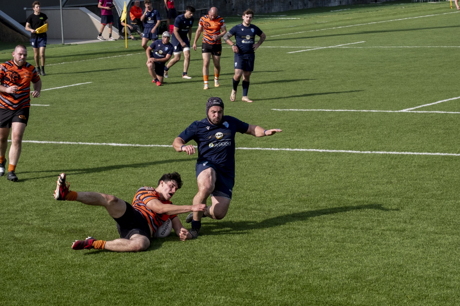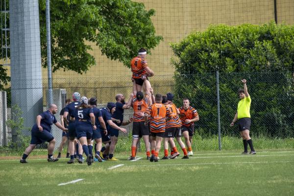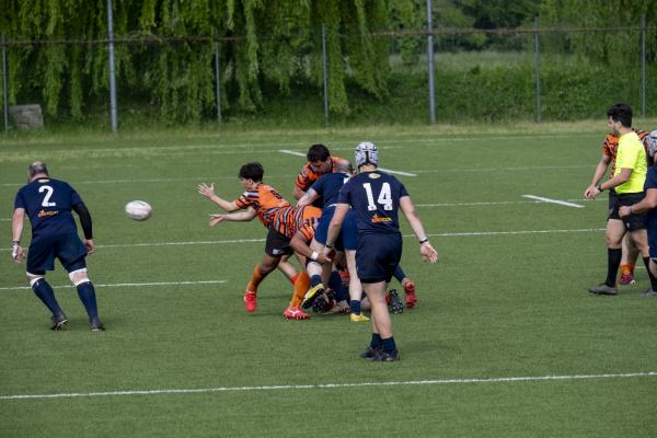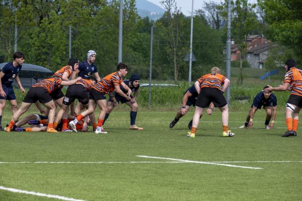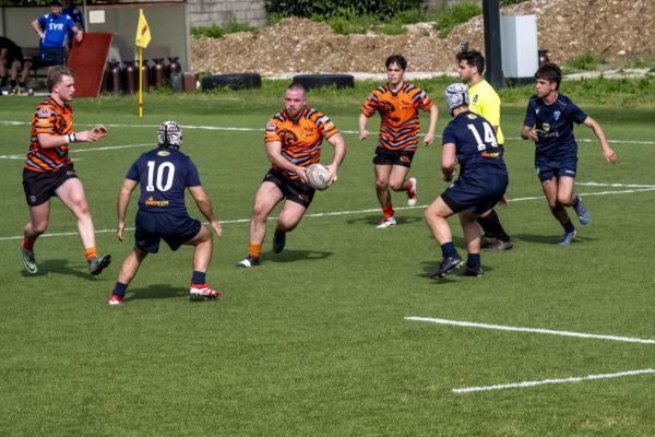 Nel pomeriggio, l’attenzione si è spostata sulla sfida tra il RAV e la Scaligera Valeggio, un match acceso che ha regalato emozioni contrastanti. L’avvio è stato fulminante per il RAV, con Henstock e Dalla Pozza che hanno marcato due mete nei primi otto minuti, dando l’impressione di una partita già indirizzata. Tuttavia, la reazione della Scaligera è stata feroce. Mischie dominate e touches impeccabili hanno garantito un costante possesso palla agli ospiti, mentre i padroni di casa hanno dovuto gestire una fase critica, giocando in inferiorità numerica a causa di due cartellini gialli. Il XV veronese, con un gioco concreto e fisico, ha accorciato le distanze al 17°, mantenendo il controllo per diversi minuti, solo nel finale del primo tempo i padroni di casa hanno saputo invertire la tendenza, andando a segno con Trento G. e Castello, che ha sfondato la difesa avversaria con una velocità impressionante.