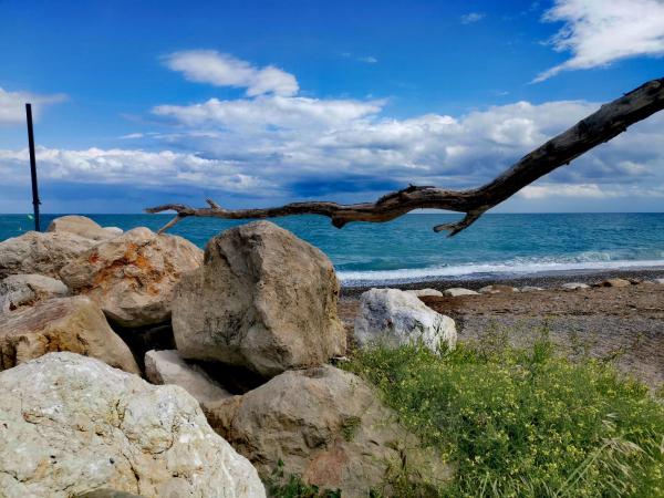 Arrivati a Villeneuve-Loubet, il mare ci chiama con insistenza… e noi rispondiamo! Piedi nella sabbia, vista