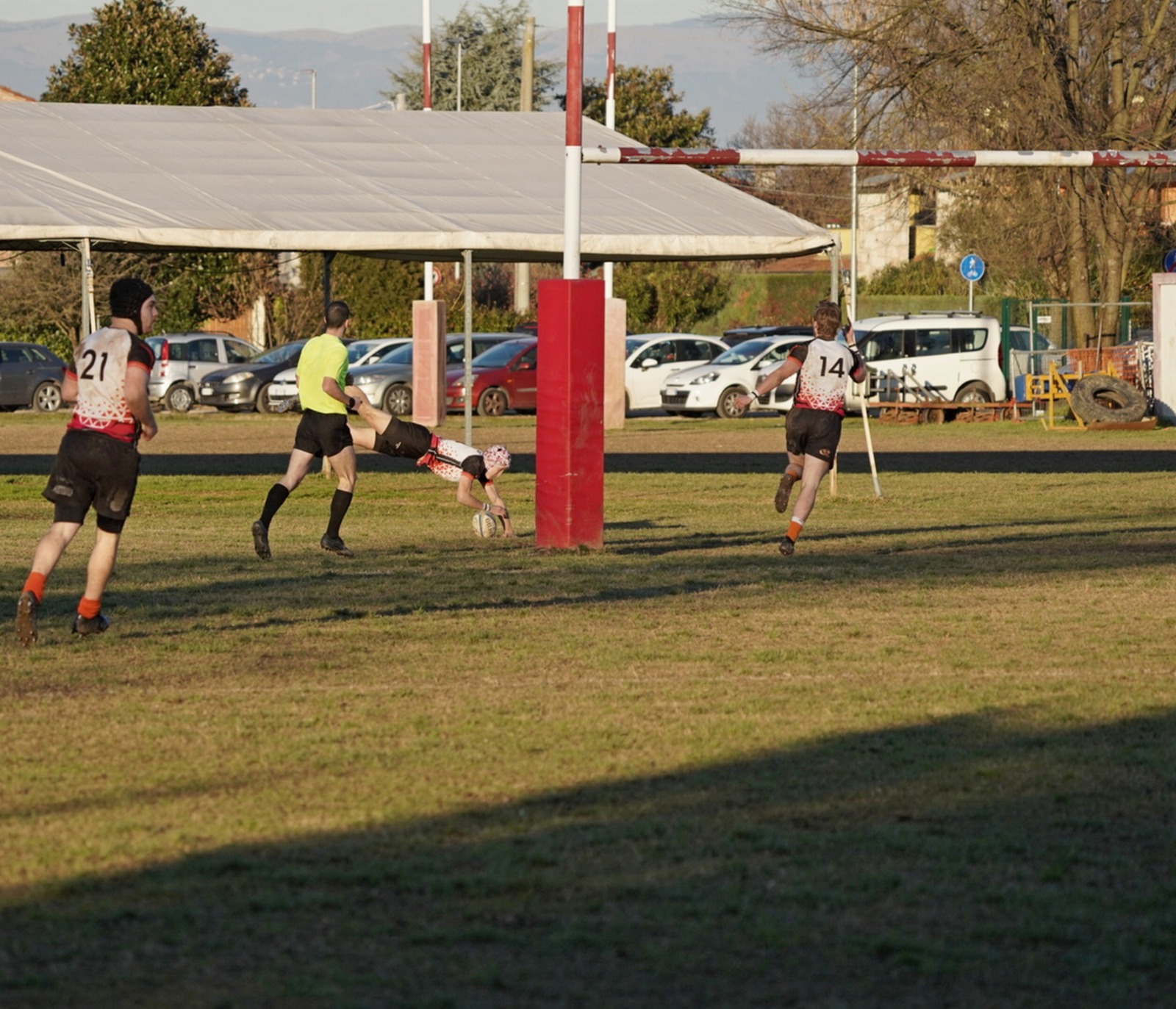 Nonostante le mischie “non contest” decretate dall’arbitro per mancanza di piloni, il RAV ha continuato a lottare. I Rangers hanno trovato la terza meta con un drive ben organizzato, ma i nero-arancio non hanno mollato. Caretta, De Tomasi e Grolla hanno fatto un lavoro oscuro e prezioso, e al 52’ Trento Gabriele ha schiacciato in meta dopo un’azione corale. La trasformazione mancata ha fissato il punteggio sul 23-22.