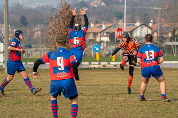 Poco dopo un' altra meta dell'Asolo non trasformata porta il risultato sul 17 pari e sul finire della partita i nostri ragazzi mollano un po' e consentono due marcature avversarie non trasformate che fissano il risultato sul 27-17.