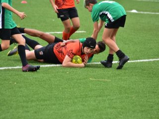 Nel secondo tempo i ragazzi perdono un po’ la concentrazione, si fa sentire la stanchezza e Lagaria riesce a fare una meta e un realizzo .