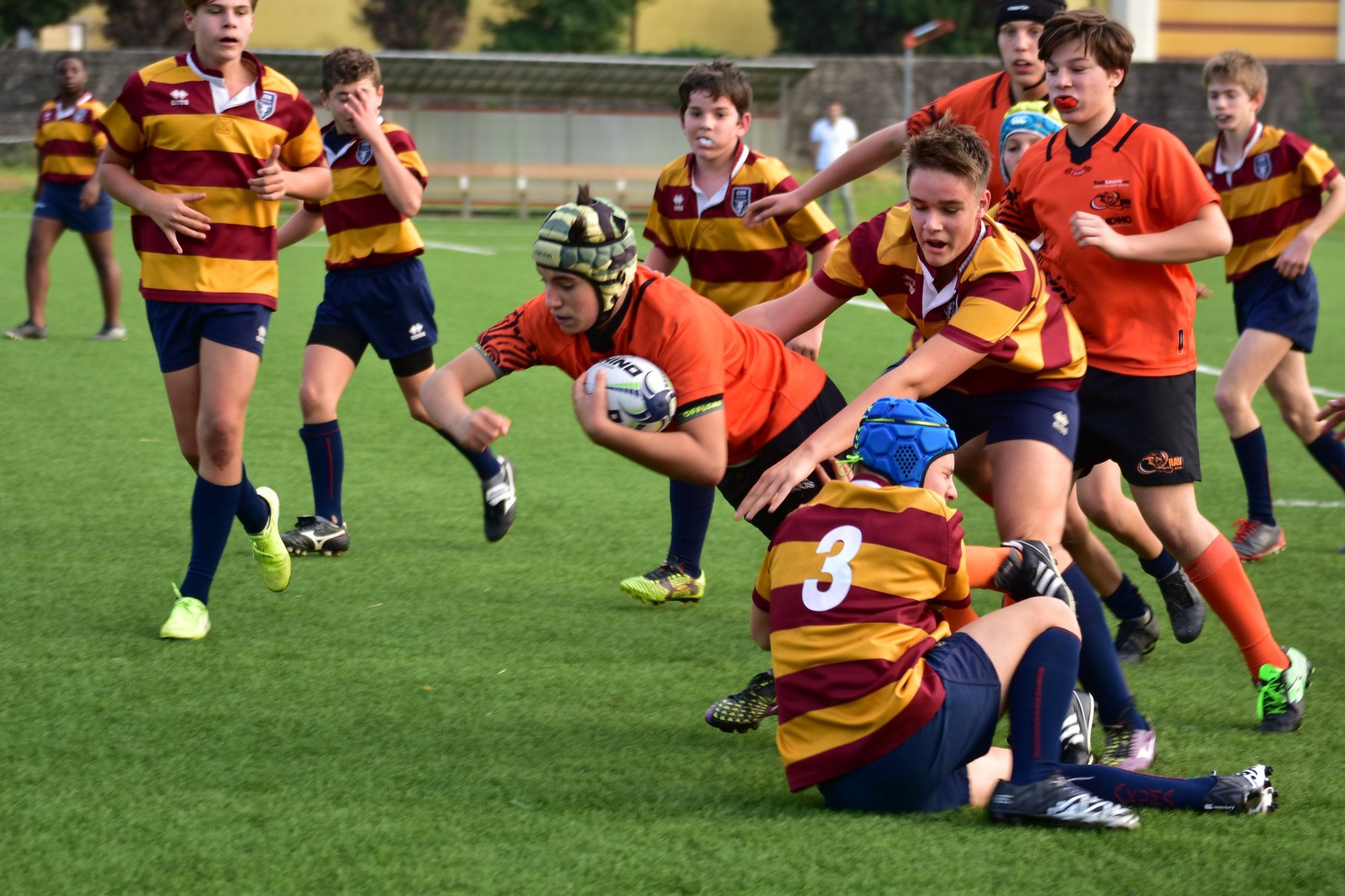 primi 15 minuti poi la prima meta del Cus . Un susseguirsi di mete fini a chiudere il primo tempo 22 a 0 per il Cus . Inizia il secondo tempo e la nostra U14 più carica e agguerrita riesce a realizzare la prima meta con realizzo, guadagnando 7 punti