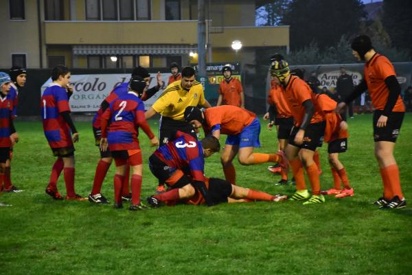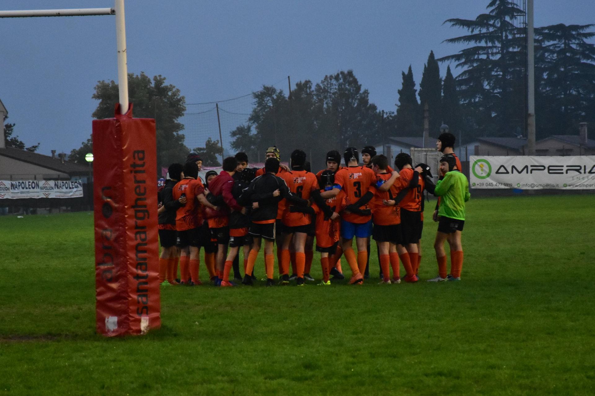 Oggi sabato 2 novembre 2019 si gioca in casa Valpolicella regno di viti e ottimo vino. Tutto inizia alle 17 in punto e dopo soli 4 minuti Davide Tisato si fa largo e corre come un ghepardo in meta. Al nono prende la palla Riccardo Balasso e vola in meta. Al dodicesimo ancora Davide Tisato porta il punteggio di 15 a 0 per la Rav. I ragazzi sono carichi e combattivi e Alessandro Trevisson segna così la quarta meta. Per la trasformazione si fa avanti Lorenzo Meggiorin che deve tirare dai 15 metri. Sale, tira un bellissimo piazzato tra i due pali realizzando così 3 punti. Forse il forte entusiasmo ci fa abbassare la guardia e allo scadere del primo tempo lasciamo spazio al Valpo che va a chiudere così con il punteggio di 7 a 23 per la Rav. Inizia il secondo tempo, dopo 2 minuti, il valpolicella entra in area Rav e per venti minuti tiene testa realizzando 4 mete e una trasformazione travolgendo il punteggio e portandolo a 29/23. Dalla Panchina il coach Diego Brotto ormai non ha più voce a forza di incitare i suoi ragazzi e alla fine riusciamo così, a portare la palla ovale in meta a pochi minuti dalla fine con Matteo Novello. Si chiude la partita con il punteggio di 29 a 28 per il Valpolicella .