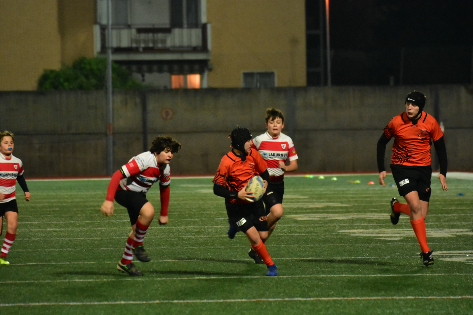 Santiago Fontana e Tommaso Pietrafesa trasforma. Poi tocca ad Alessandro Bernardi e Tommaso Pietrafesa trasforma. Ancora Alessandro Bernardi e Tommaso Pietrafesa trasforma, poi tocca a Alessandro Trevisson e ancora Tommaso trasforma. Va poi in meta il nostro capitano Santiago Fontana e ancora Tommaso trasforma. 0/40 fine primo tempo .
